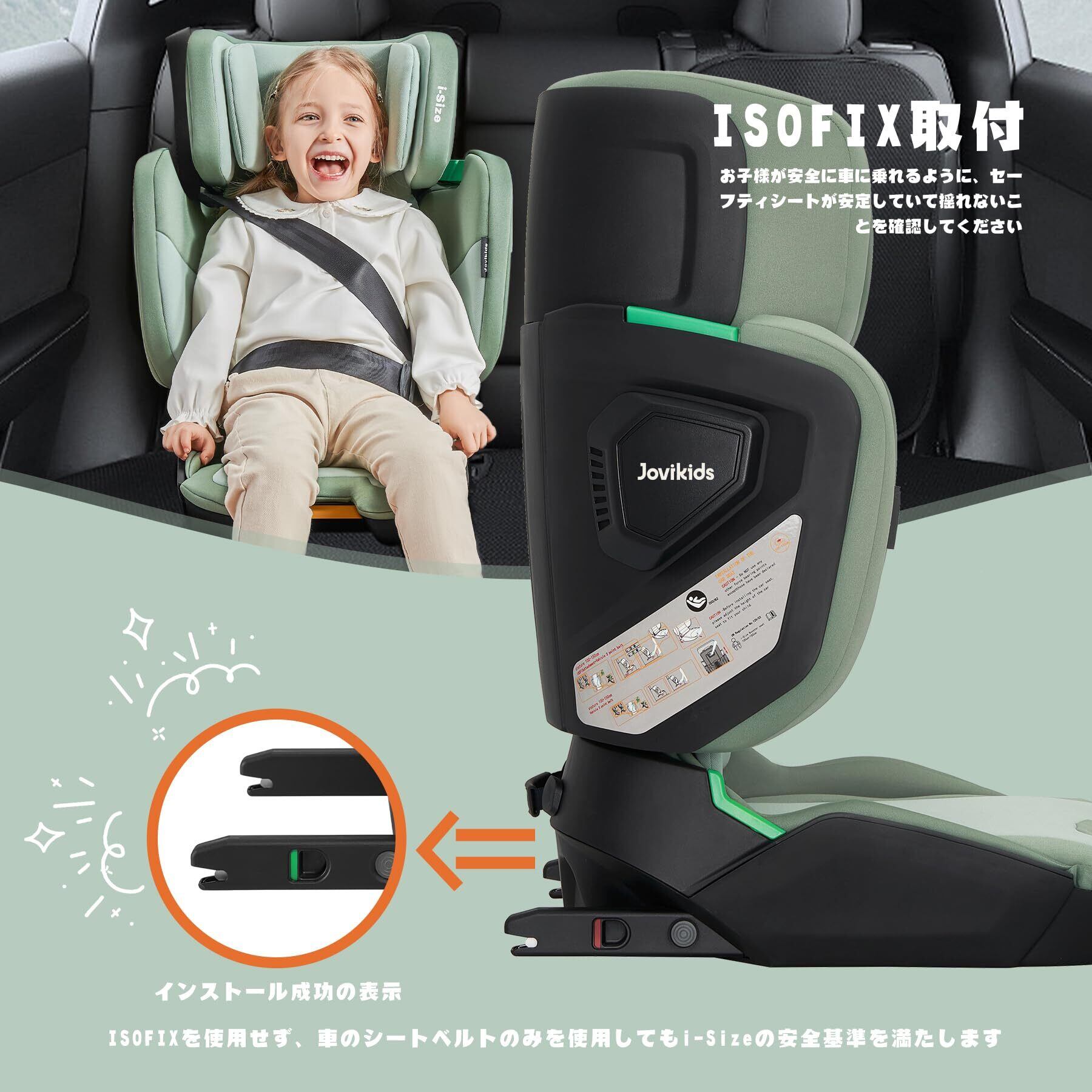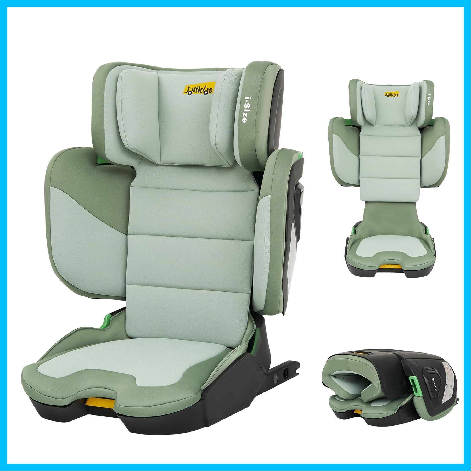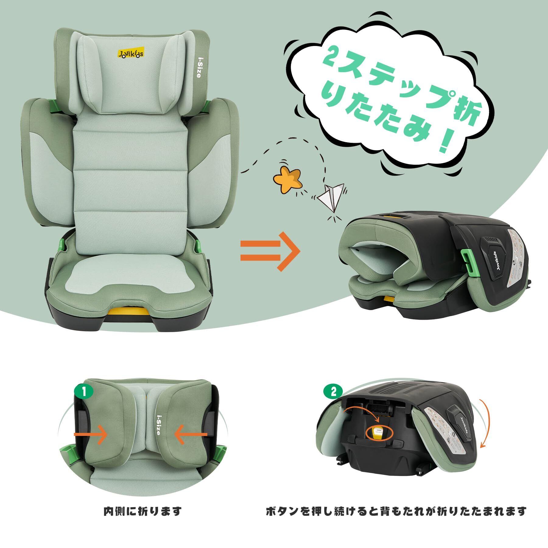 Jovikids 折りたたみのジュニアシート ISOFIX、i-Size R129適合 3歳から チャイルドシート、背もたれの幅とヘッドレストを調節、100~150cm(3~12歳くらい)ブースターシート (グリーン) | Lulu