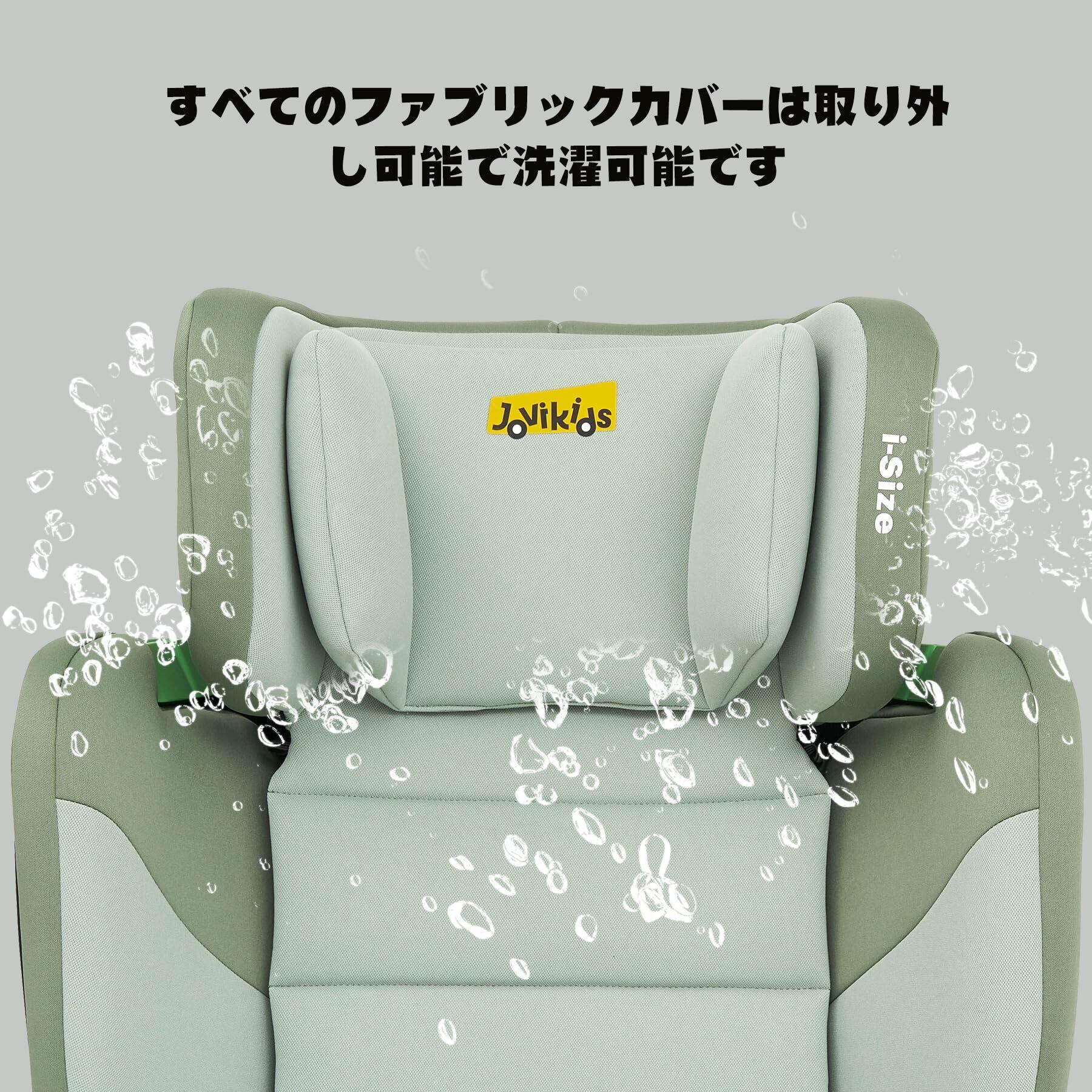 Jovikids 折りたたみのジュニアシート ISOFIX、i-Size R129適合 3歳から チャイルドシート、背もたれの幅とヘッドレストを調節、100~150cm(3~12歳くらい)ブースターシート (グリーン)