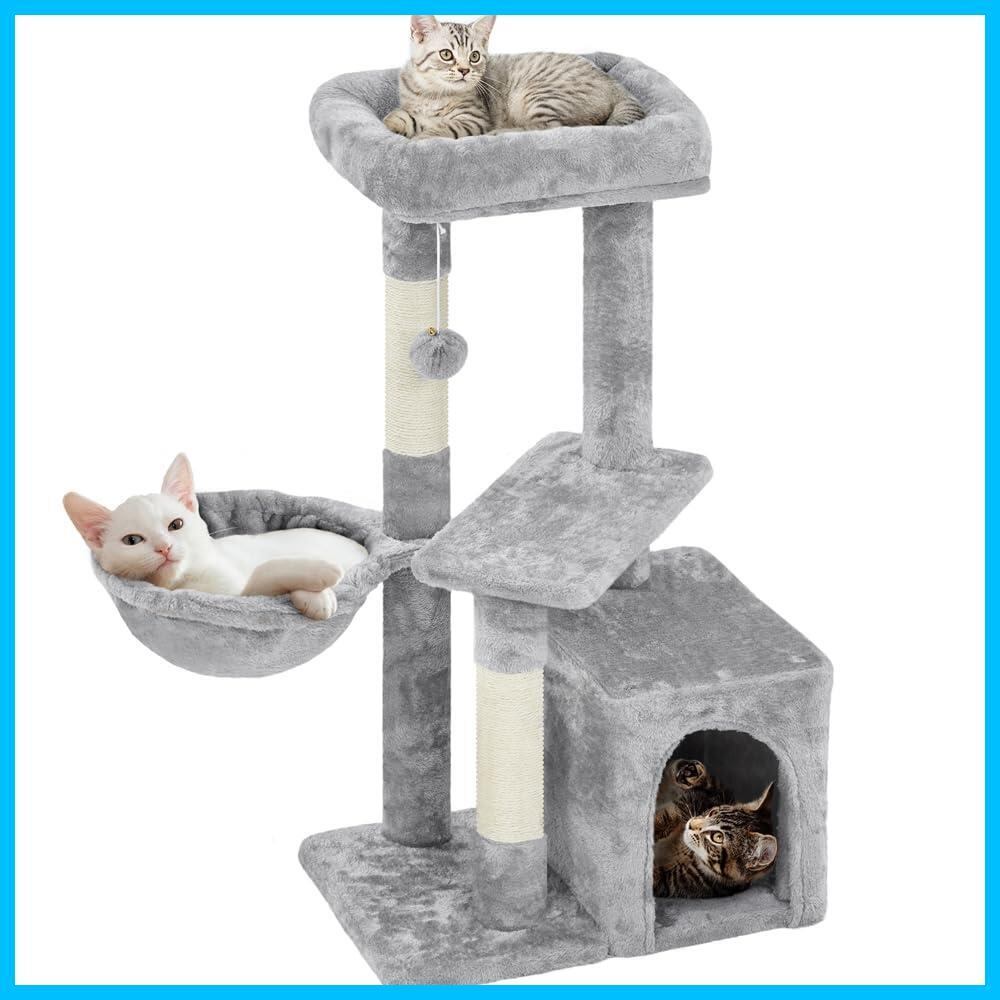 Yaheetech キャットタワー 猫タワー 小型 スリム 多頭飼い 猫ハウス キャットハウス 猫タワー 多機能 簡単組立 据え置き 転倒防止 取り外し可能 見おろし展望台 ハンモック 爪とぎポール 爪研ぎ おもちゃ 省スペース ミニ コンパクト 小さめ 頑丈安全 おしゃれ 可愛い(ライトグレー)高さ87cm | Lulu