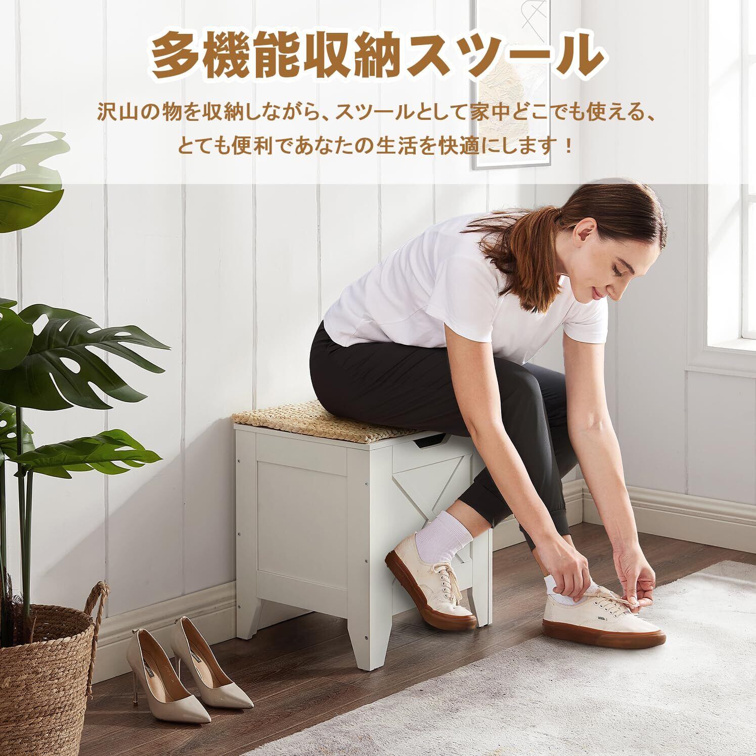VECELO 収納スツール オットマン 収納ボックス 幅45*奥行き38*高さ47CM 木製 組立簡単 踏み台 足置き リビング/玄関/寝室適用 おもちゃ箱 洋服収納ケース ホワイト