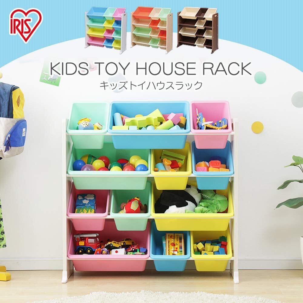 【斜めで取りやすい! ベビー用品収納にも】アイリスオーヤマ おもちゃ箱 ブラウン 幅86.3×奥行34.8×高さ89.5cm キッズ トイハウスラック KTHR-412