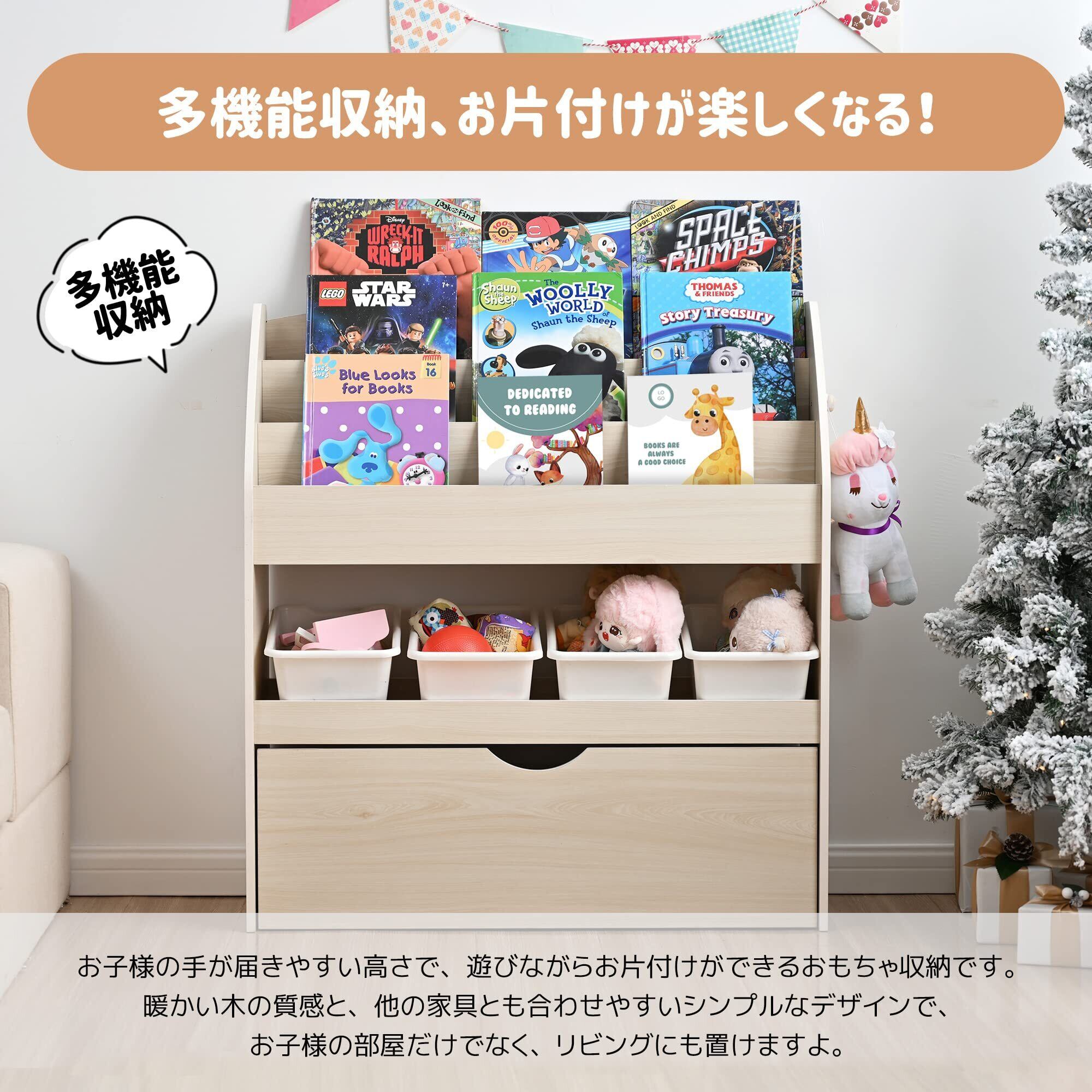 【読書習慣を促進】絵本を整理するのに役立つだけでなく、子供たちの読書習慣を促進するアイテムとしても優れています。絵本だけでなく、おもちゃや文房具など、さまざまなアイテムを収納するのに便利です。