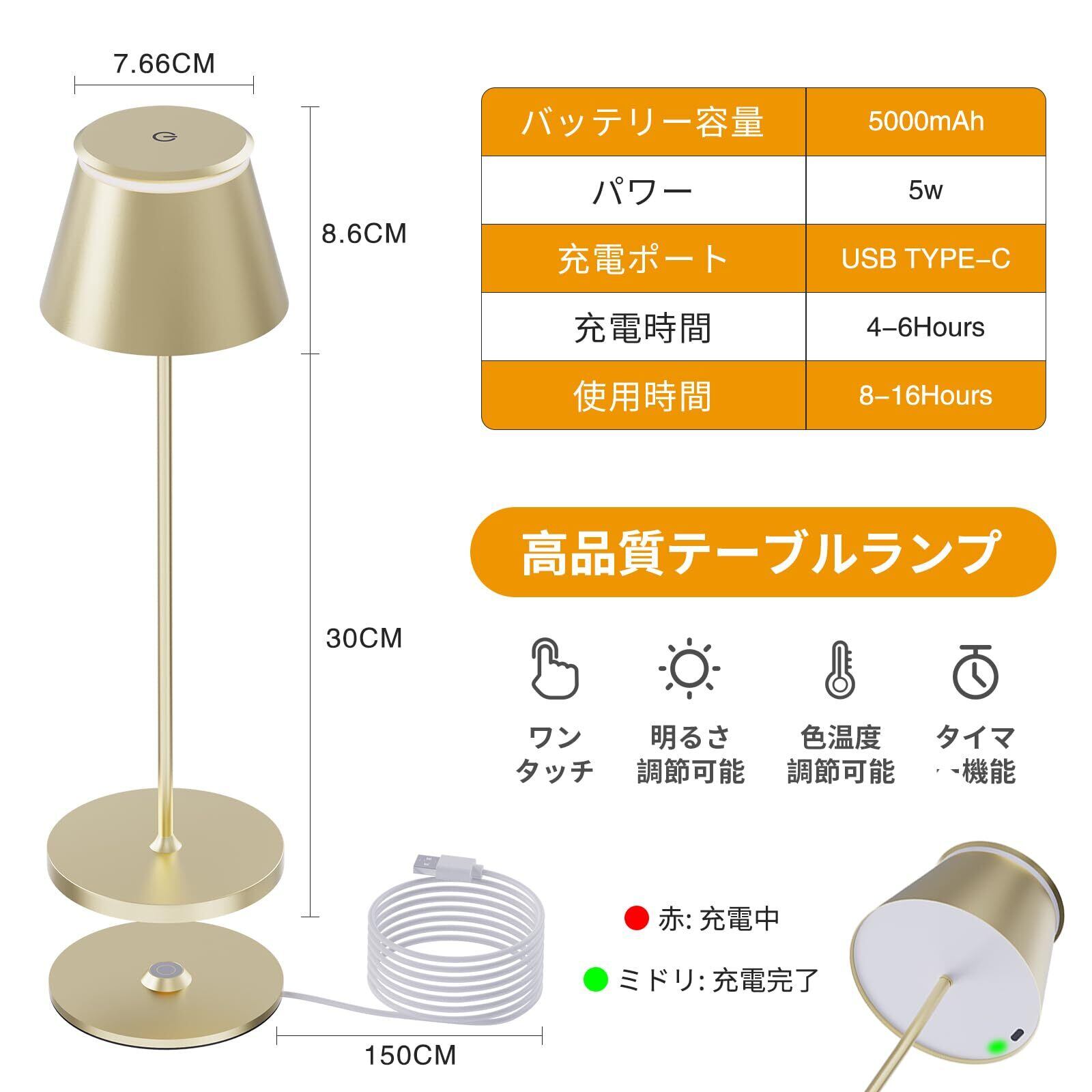 Yupola テーブルランプ 間接照明 ワインレス 5000mAh 3色モード タイマー機能 充電式 3種類色温 無段階調光 卓上ライトサイドテーブル/ダイニングテーブル/ベッドテーブル/デスク リビング/洋室旅館/寝室に適用/プレゼント (ゴールド)