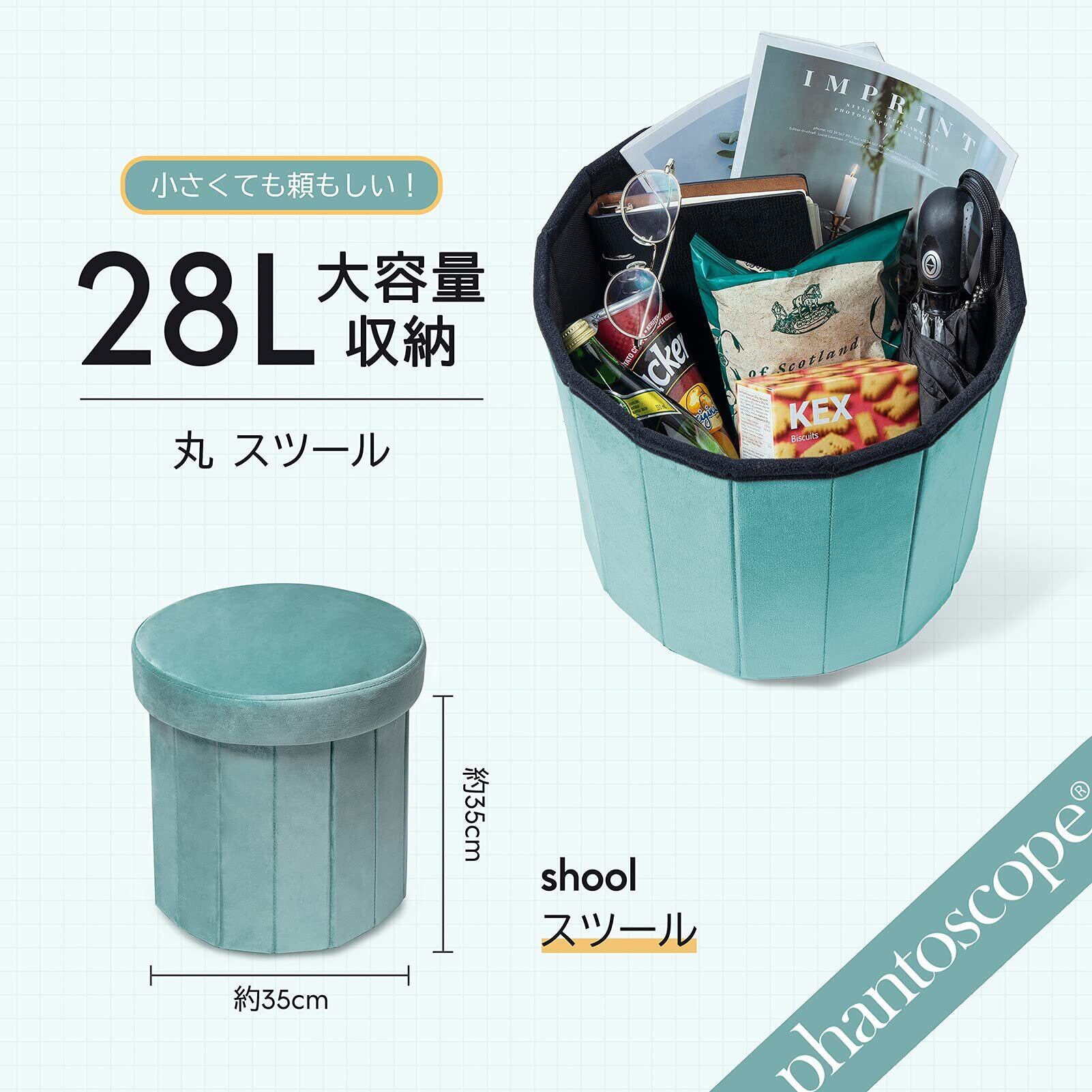 Phantoscope ベルベット 収納スツール オットマン 28L 折りたたみ式 収納ボックス おしゃれ 丸 フットスツール 耐荷重100KGまで 足置き インテリア 1人掛け 収納ベンチ 直径35cm ピンク | Lulu