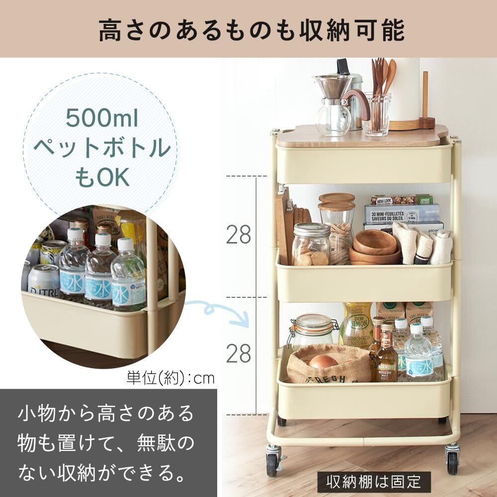 【取り出しやすくリニューアル! 】アイリスプラザ キッチンワゴン 調味料ラック バスケットラック 木天板タイプ 収納ワゴン 3段 キャスター付 幅44.5×奥行35×高さ78cm ブラック KW-L002 | Lulu
