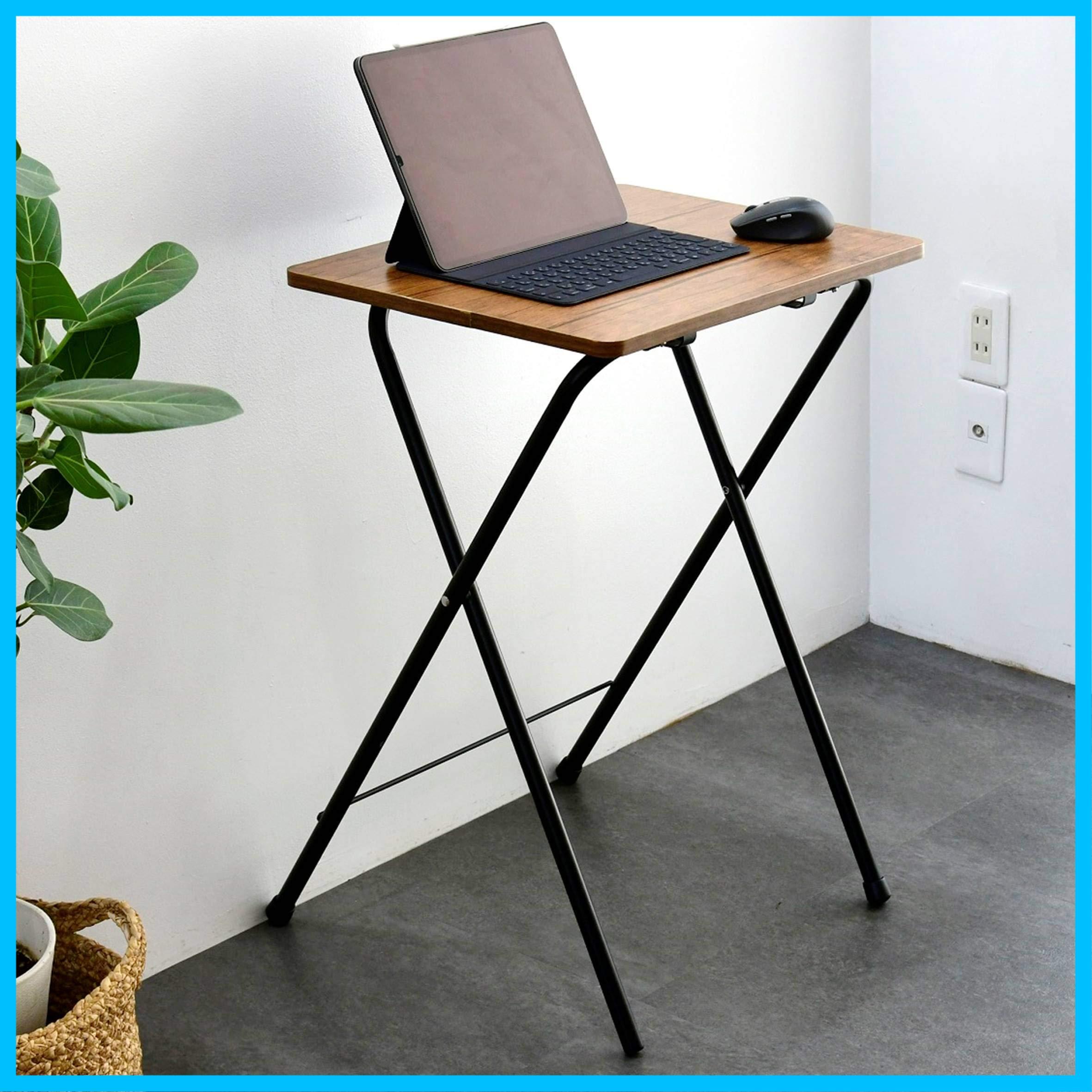 山善(YAMAZEN) テーブル ミニ 折りたたみ サイドテーブル 幅50×奥行48×高さ70cm ハイタイプ 傷・汚れ・水分・熱に強い天板(メラミン加工) なめらかな表面 角が丸い アンティークブラウン/ブラックRYST5040H(ABR/BK4) 在宅勤務 | Lulu