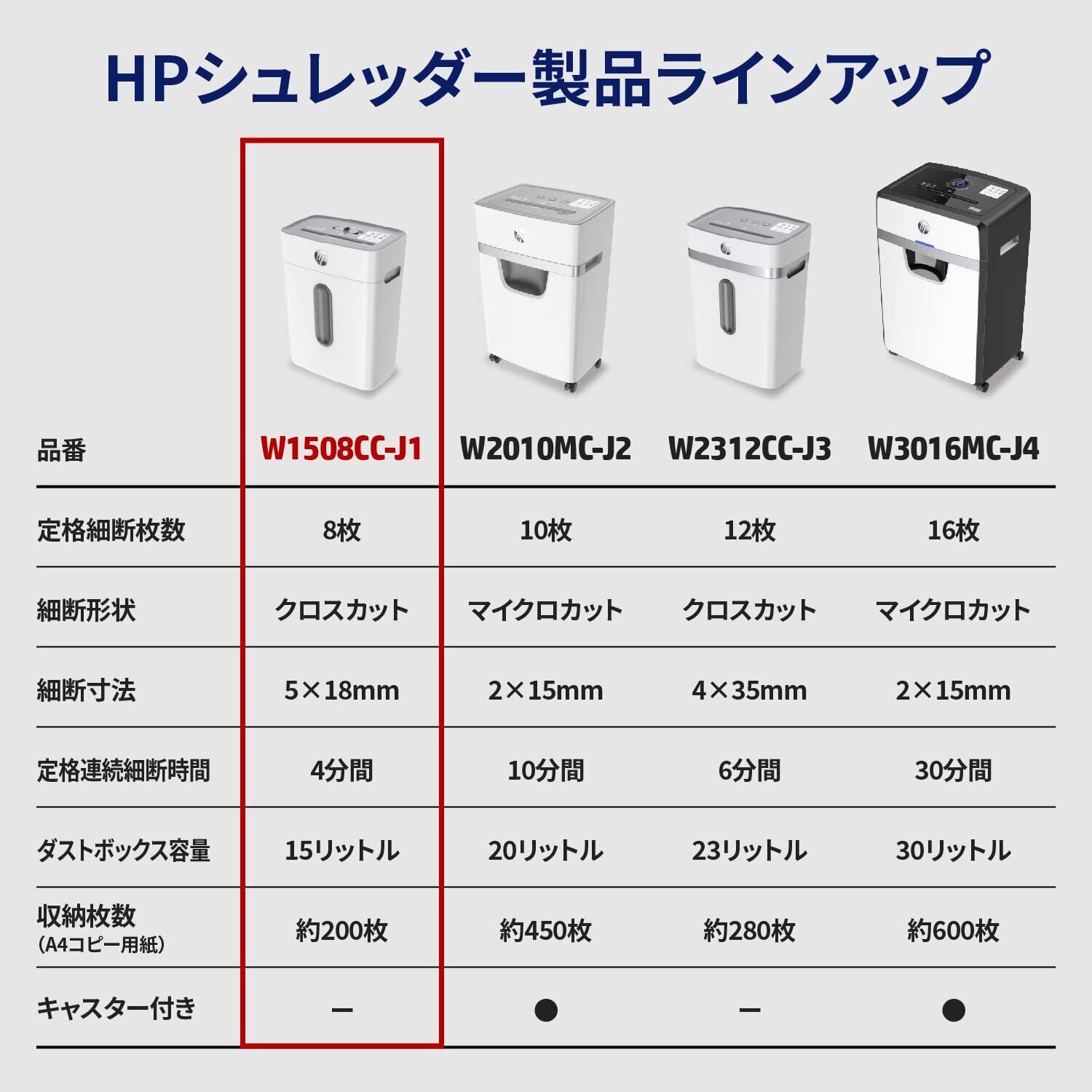 HP 電動 シュレッダー 家庭用 ( 15L / 1-3人用 ) 静音 コンパクト / クロスカット 8枚同時細断 ( リモートワーク / 在宅勤務 / オフィス ) 大容量ダストボックス / 小型 スリム | Lulu