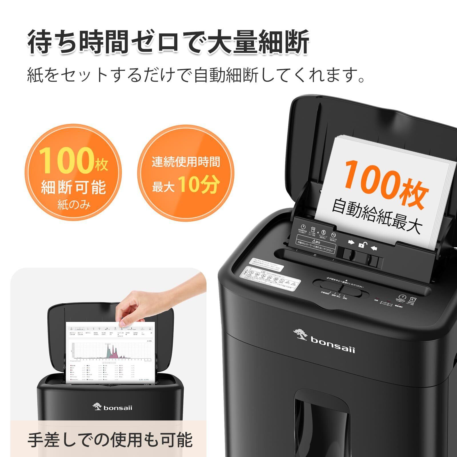 bonsaii シュレッダー 業務用 オートフィード 自動細断100枚 マイクロカット 手差しも対応 オートリバース機能 電動 16L大容量 C231-D
