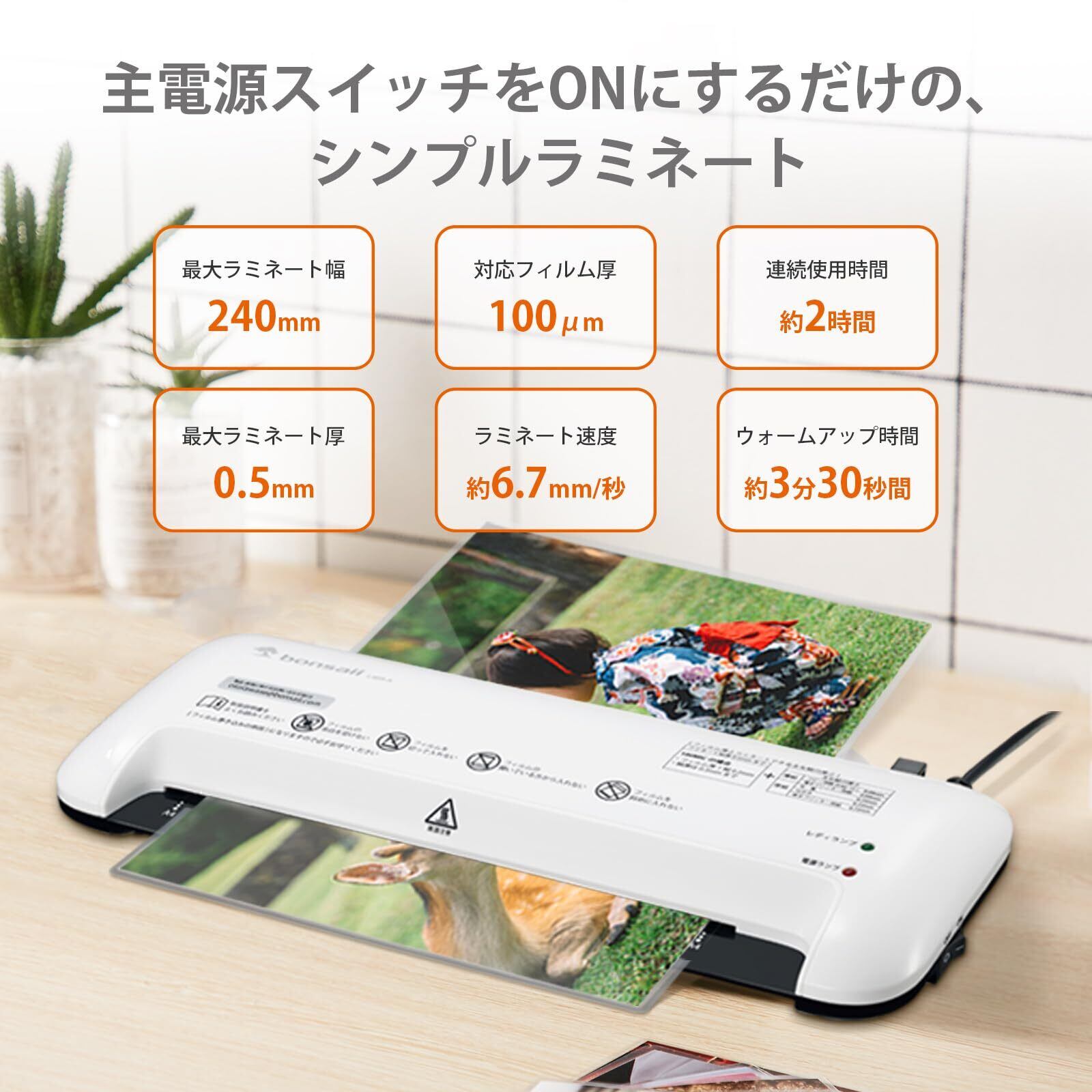 bonsaii ラミネーター 本体 A4対応 ウォームアップ時間約3分 100μmフィルム対応 パウチ加工 波打ち防止 気泡なし 操作簡単 名刺/カードサイズ対応 コンパクト 家庭用 ラミネート機械 【PSE認証済】 ホワイト L409-A | Lulu