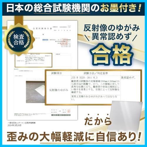 【歪み大幅軽減】従来のアクリルミラーの欠点はガラスミラーに比べて歪みがあることでした。弊社割れないミラーは歪みを大幅に軽減しています。