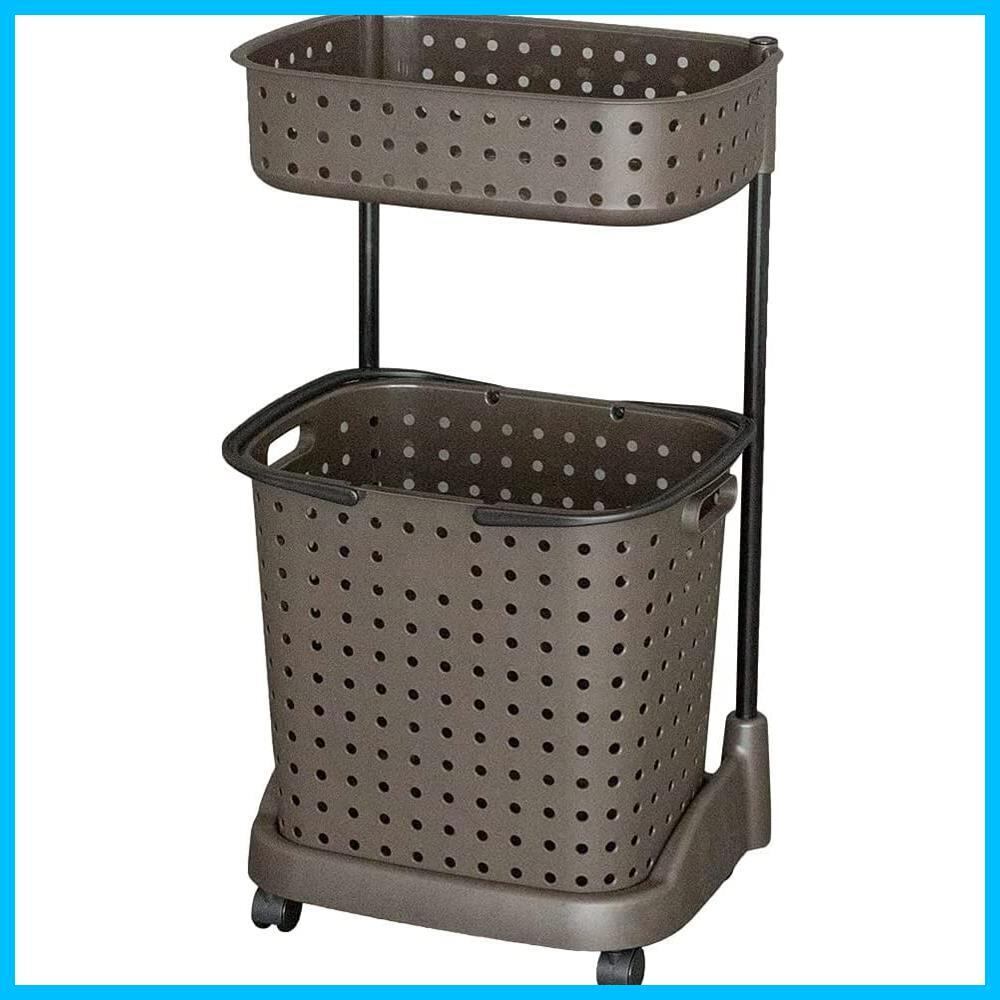 JEJアステージ(JEJ Astage) 収納ラック レクエア ランドリーバスケット 2段 ダークブラウン 日本製 簡単組み立て 幅45×奥行35×高さ78.5cm