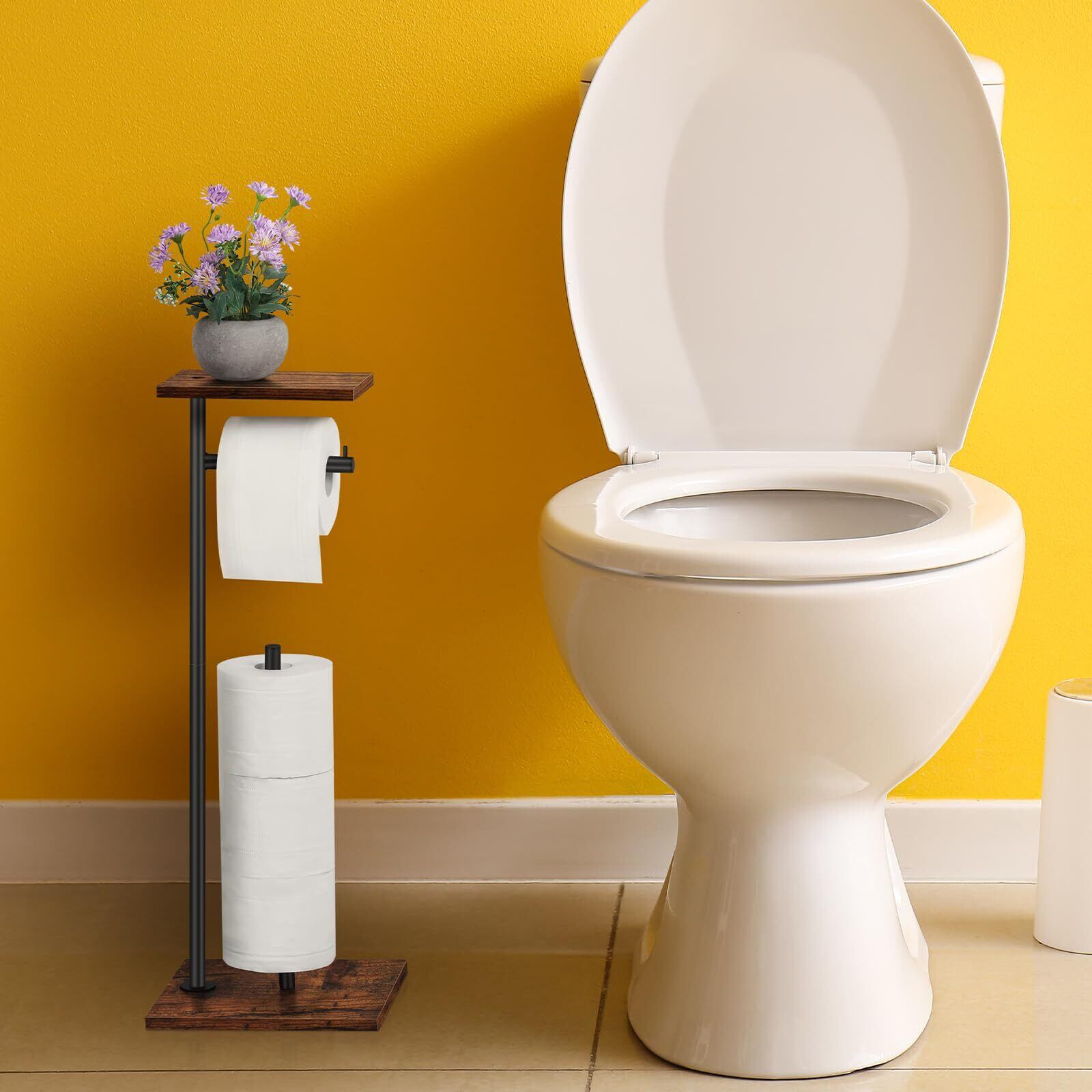 自立式トイレットペーパーホルダー トイレットペーパーホルダー トイレットペーパースタンド ティッシュホルダー 置き型ペーパーホルダー ペーパーホルダースタンド 金属ホルダー 木製棚付き キッチンペーパーホルダー トイレ 収納 ラック | Lulu