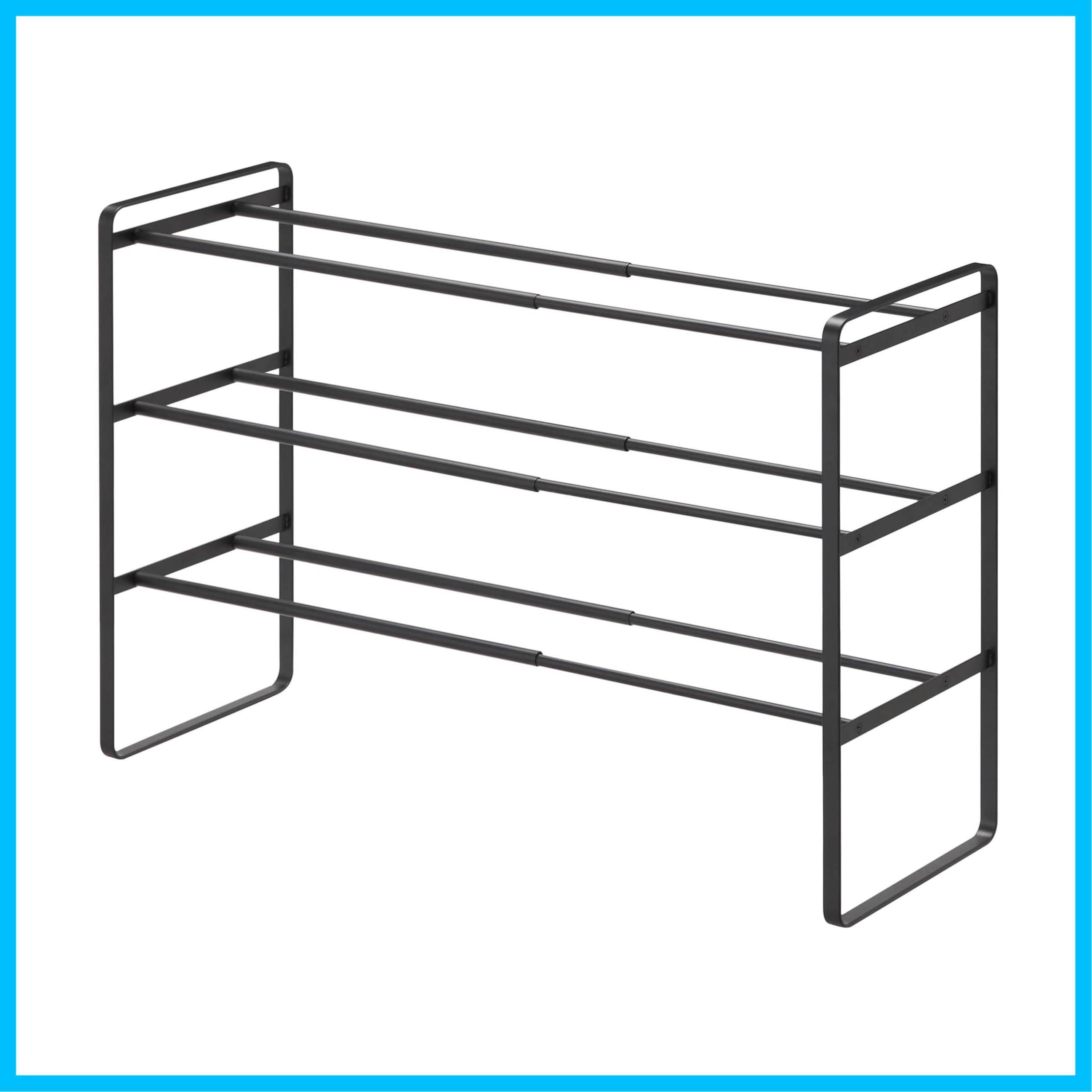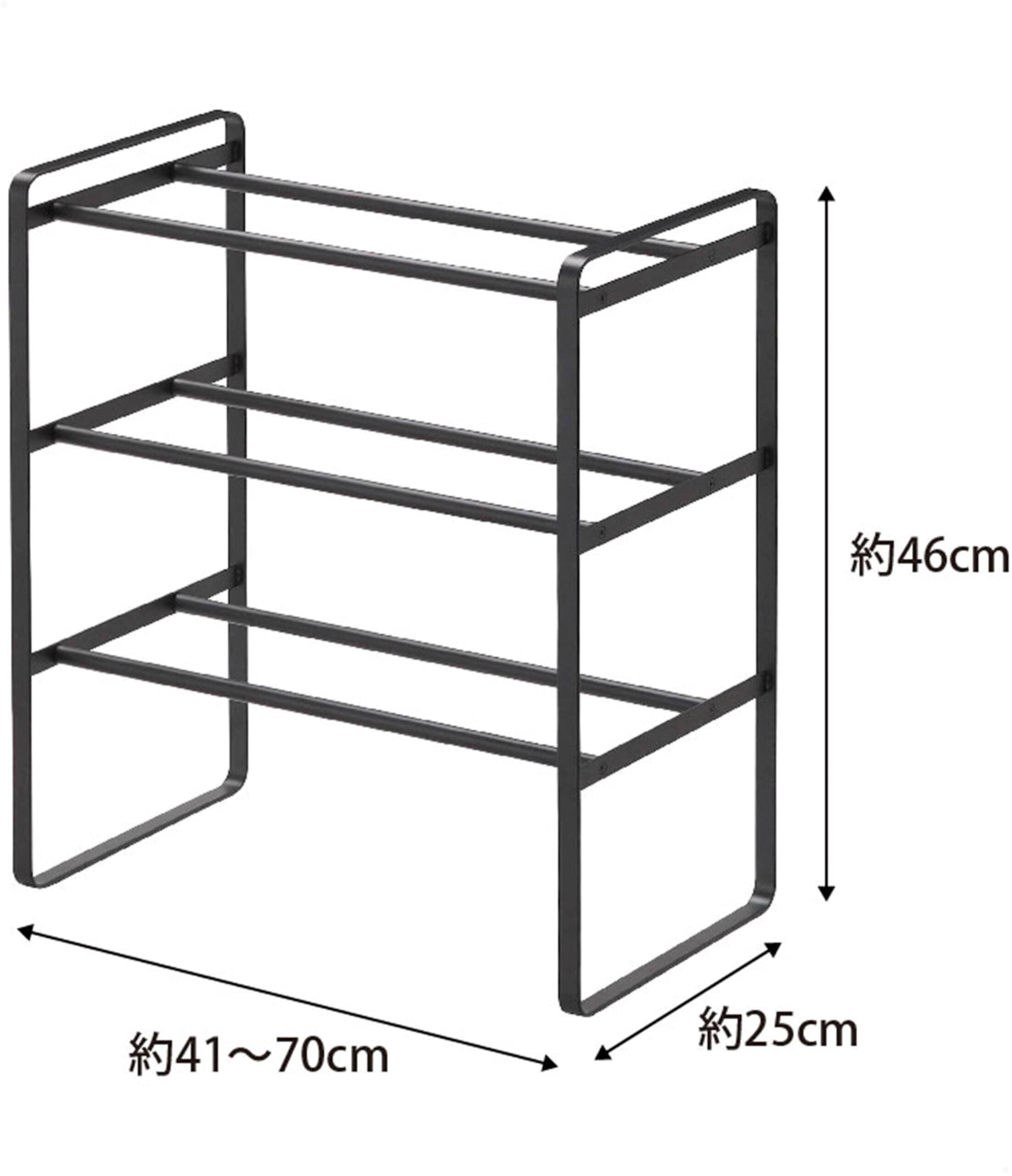 山崎実業(Yamazaki) 伸縮 シューズラック 3段 ブラック 約W41~70×D25×H46cm フレーム Frame 玄関 靴 収納 7556