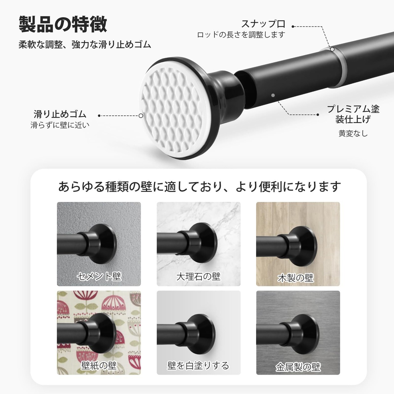 ◆ 工具不要・簡単取り付けるくぎ・ネジ ・パンチを使わず、突っ張るだけで簡単に取り付けられます。壁に穴がある心配もなく、壁に痕跡も残さないので、突っ張り棒を安心に取り付けて、賃貸住宅におすすめです。使用場合:つっぱり棒、クローゼットロッド、浴室用タオル掛け、室内用カーテンロッド、シャワーカーテンロッド、布団干し、物干し竿、キッチン用品収納