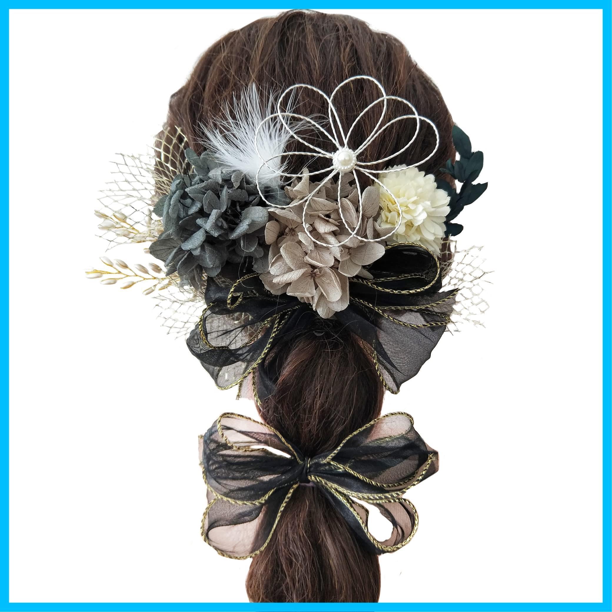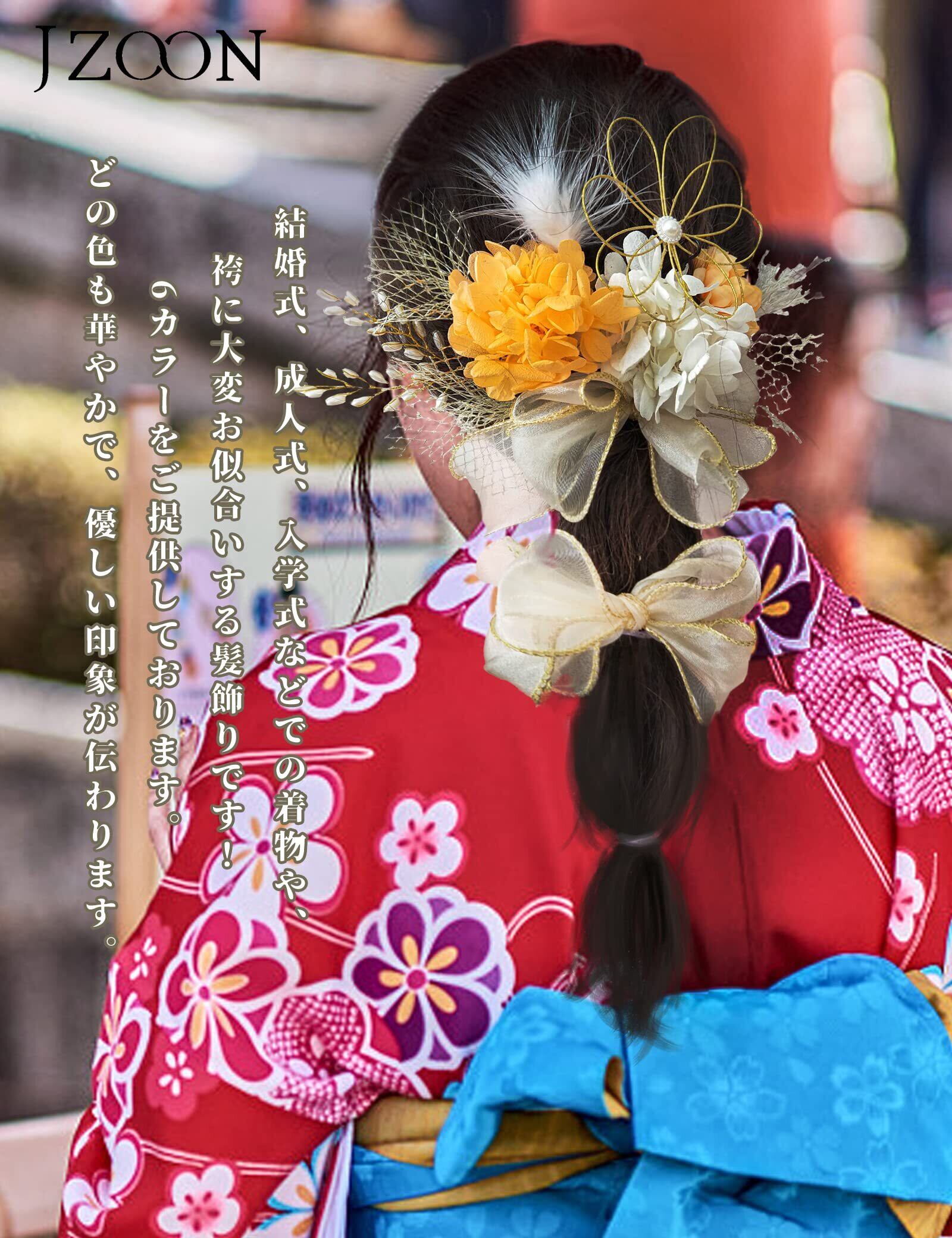 [JZOON] 6色展開 リボン 髪飾り 成人式 ドライフラワー 卒業式 七五三 浴衣 和装 袴 結婚式 振り袖 振袖 着物 水引き 赤 かすみ草 パール