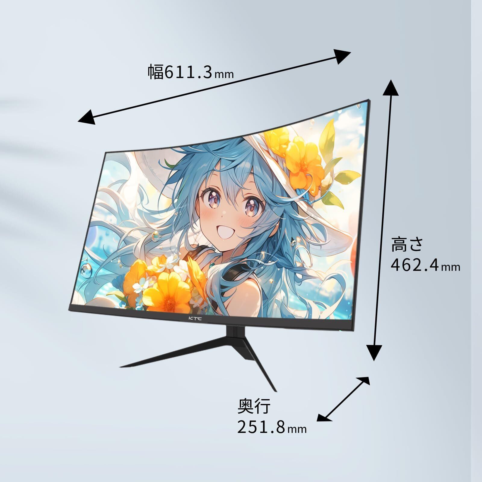 KTC 27インチ 湾曲ゲーミングモニター WQHD (2560x1440) 180Hz 1ms 5000:1コントラスト比 132%sRGB VAパネル FreeSync & G-Sync対応 HDR10 PS5対応 1500Rカーブ HDMI×2 DP×2 H27S17 | Lulu