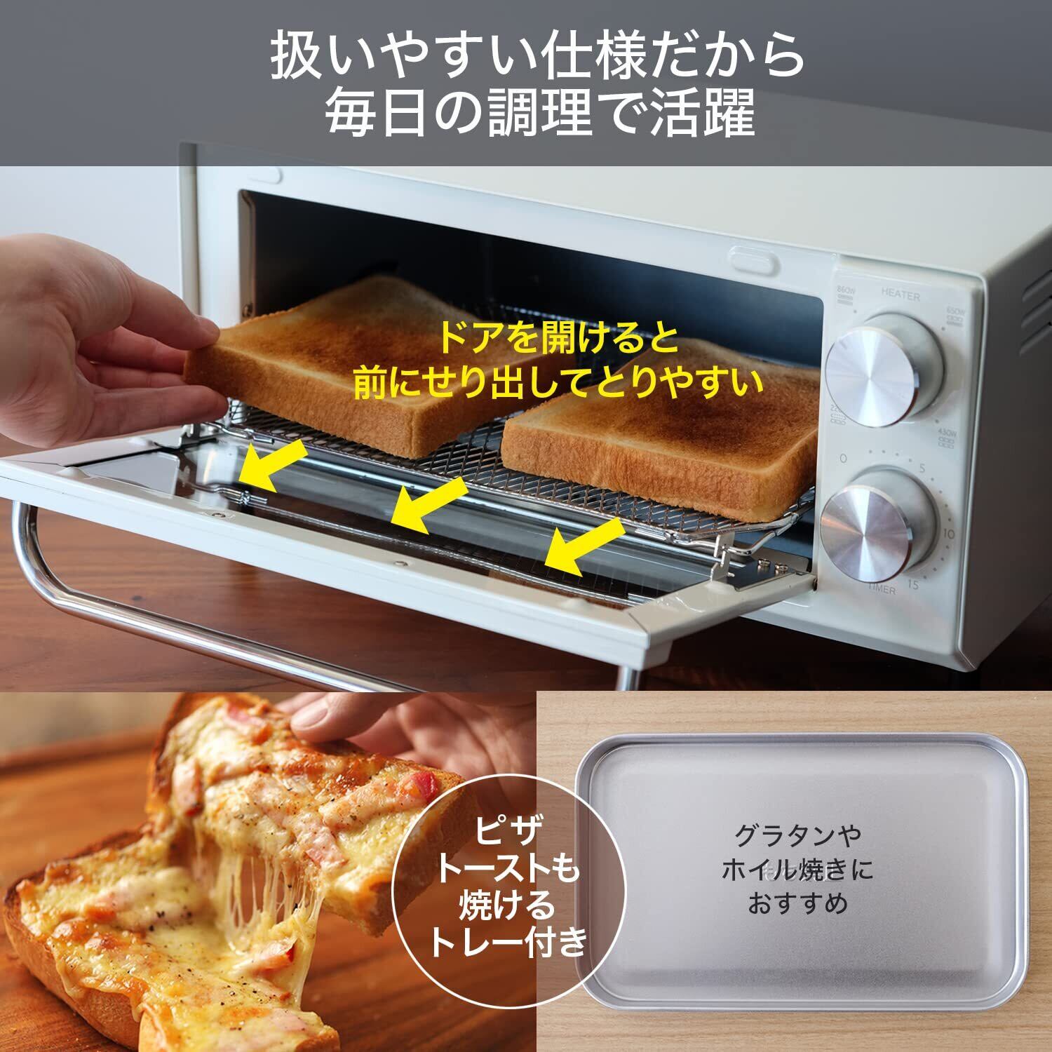 「外カリ、中ふわ」の美味しいトーストを。ロースタイルで近火のヒーターだからすばやく、美味しい。マットなボディに金属パーツがきらめく上質な外観。安心のサーモスタット搭載。開閉式のくず受けで掃除がお手軽。調理の幅が広がるトレー付。