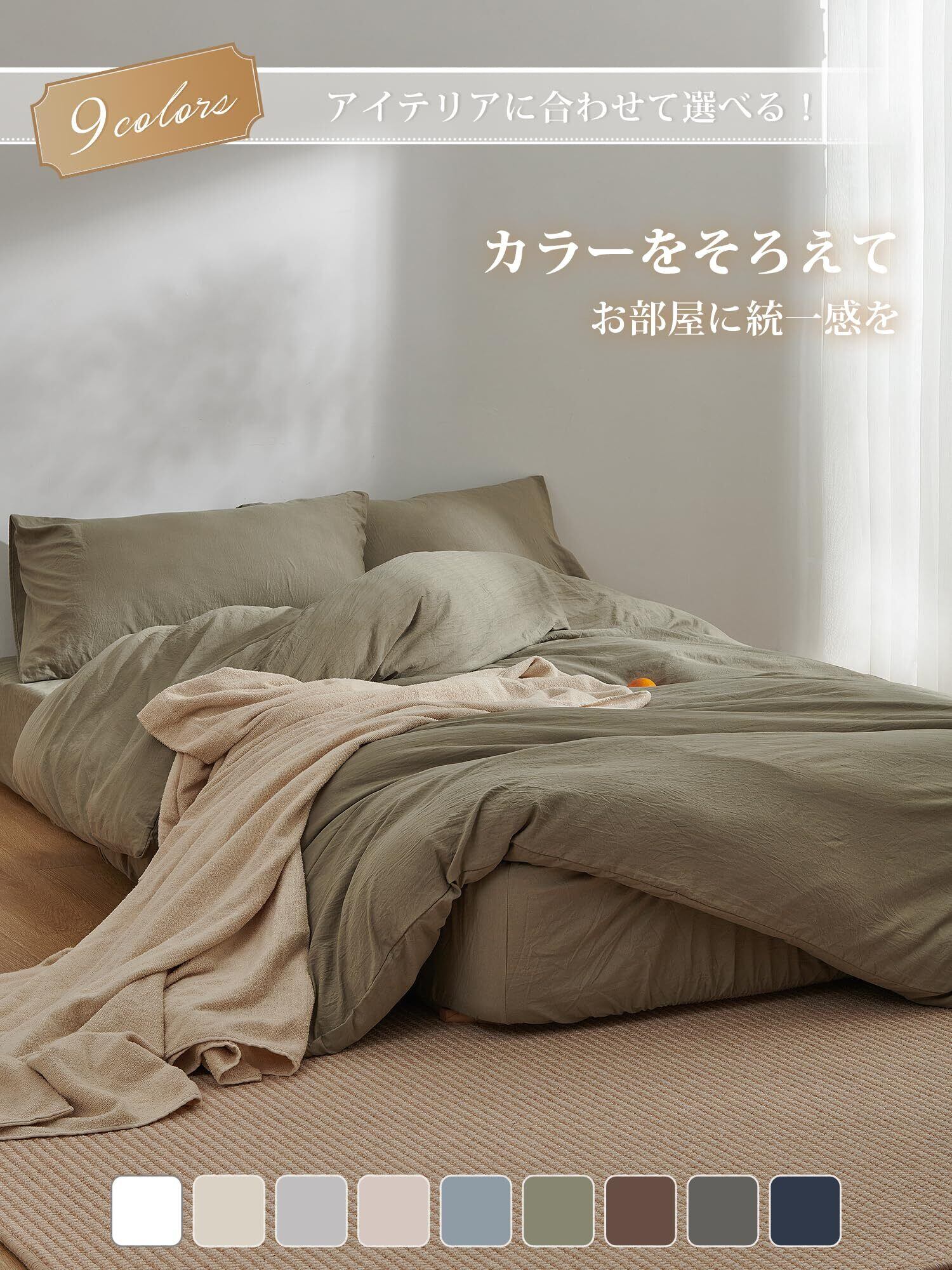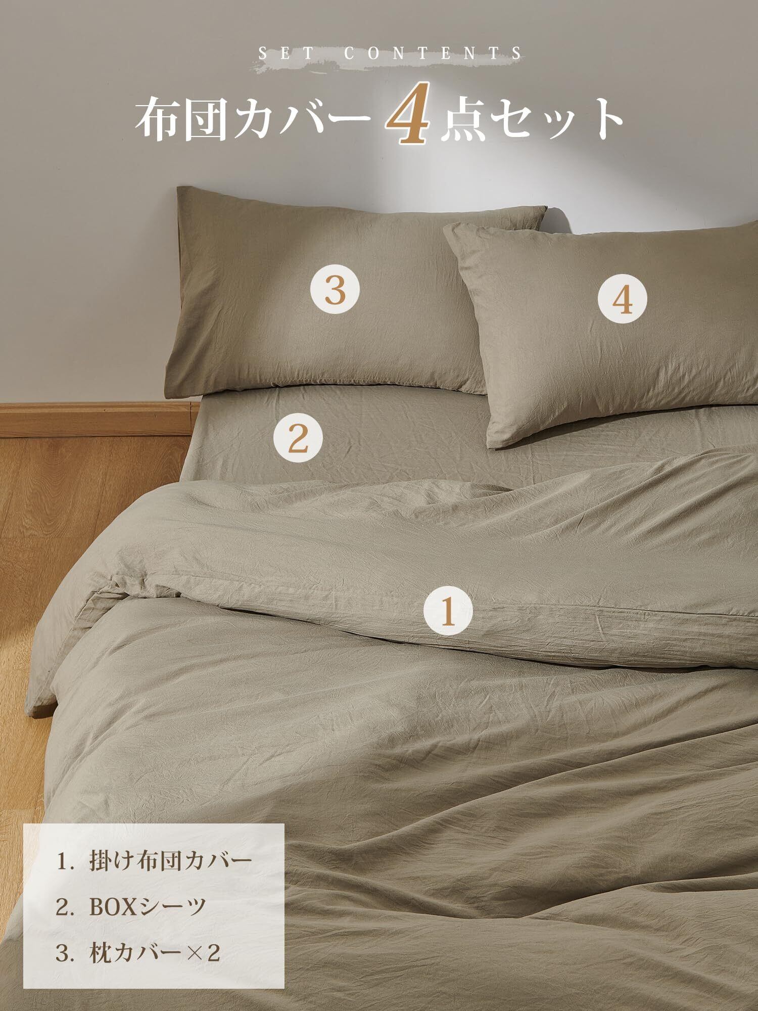 クモリ(Kumori) 寝具カバーセット 布団カバーセット 洗いざらし シワ加工 水洗い やわらか (掛け布団カバー ボックスシーツ 枕カバー)吸水速乾 丸洗いOK 肌に優しい 洗える 無地 シンプル オールシーズン(セミダブル・4点セット グリーン) | Lulu