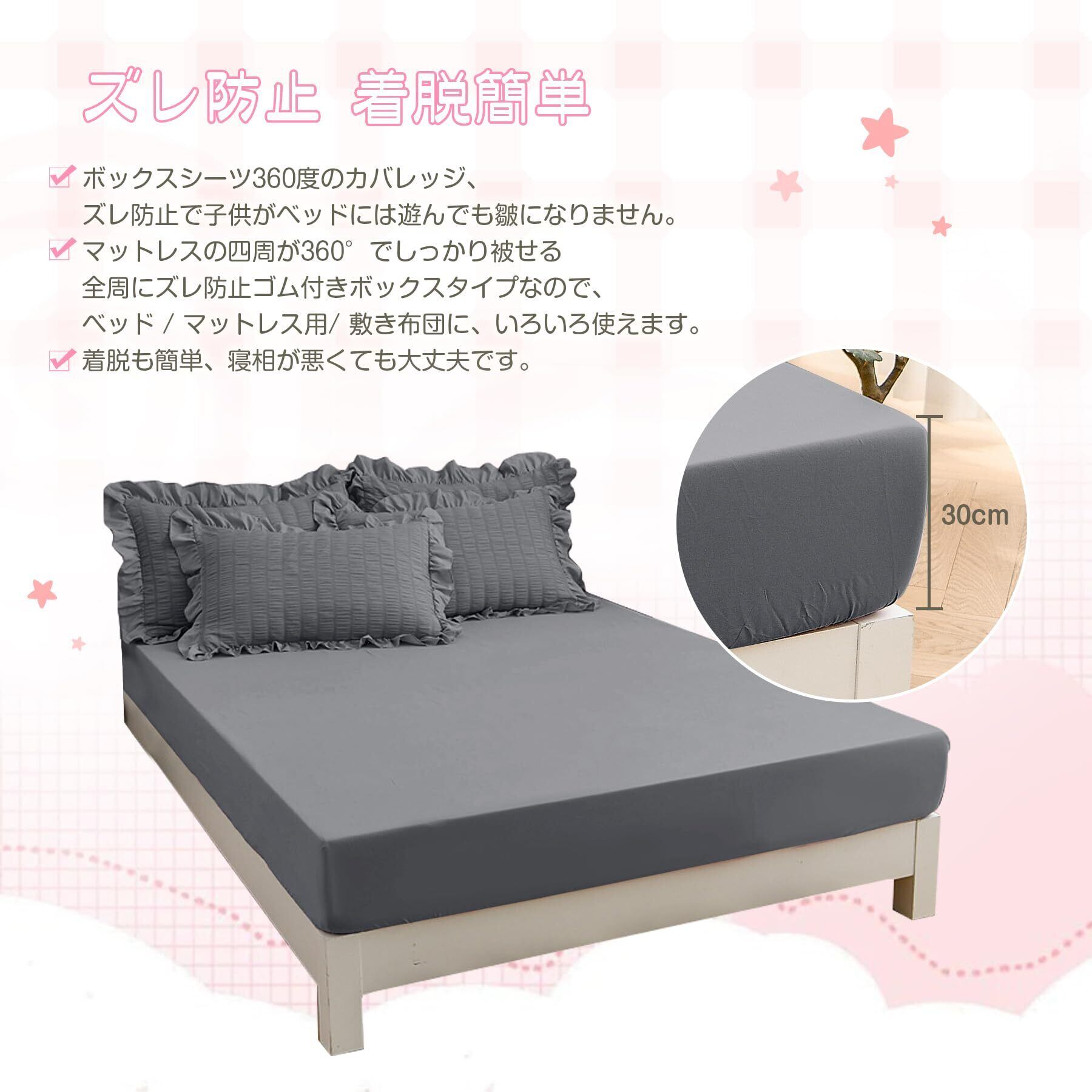 布団カバー AYO セミダブル・4点セット シアサッカー生地 フリル付き 掛け布団カバー ベッドカバー 枕カバー ボックスシーツ 寝具カバーセット ピーチスキン加工 洋式和式兼用 洗い替え 速乾タイプ(ダークグレー,セミダブル・4点セット) | Lulu