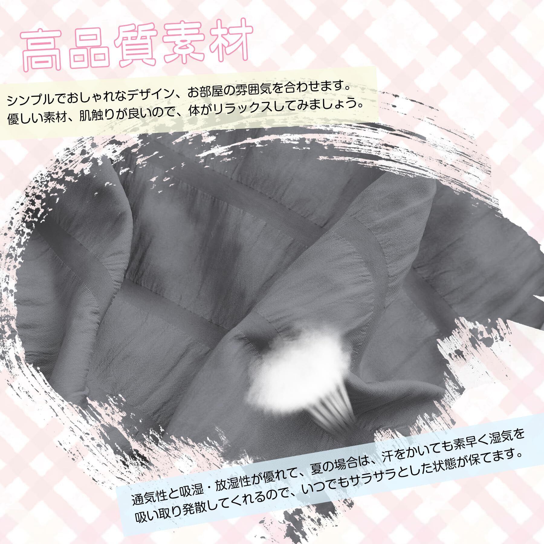 【通気性が良い&オールシーズン使用】 優れた通気性と吸放湿性優れて、夏の場合は、汗をかいても素早く湿気を吸い取って、発散してくれるのでいつでもサラサラとした肌触りです。冬の時、カバーの繊維と繊維の間に暖かな空気をためてくれるので、布団の中を暖かく保ったりするという役割もあります。汗をかいて寝苦しかったり、保温力が足りず寒かったりしてはぐっすり眠ることができません。オールシーズン快適な寝心地が楽しめます。