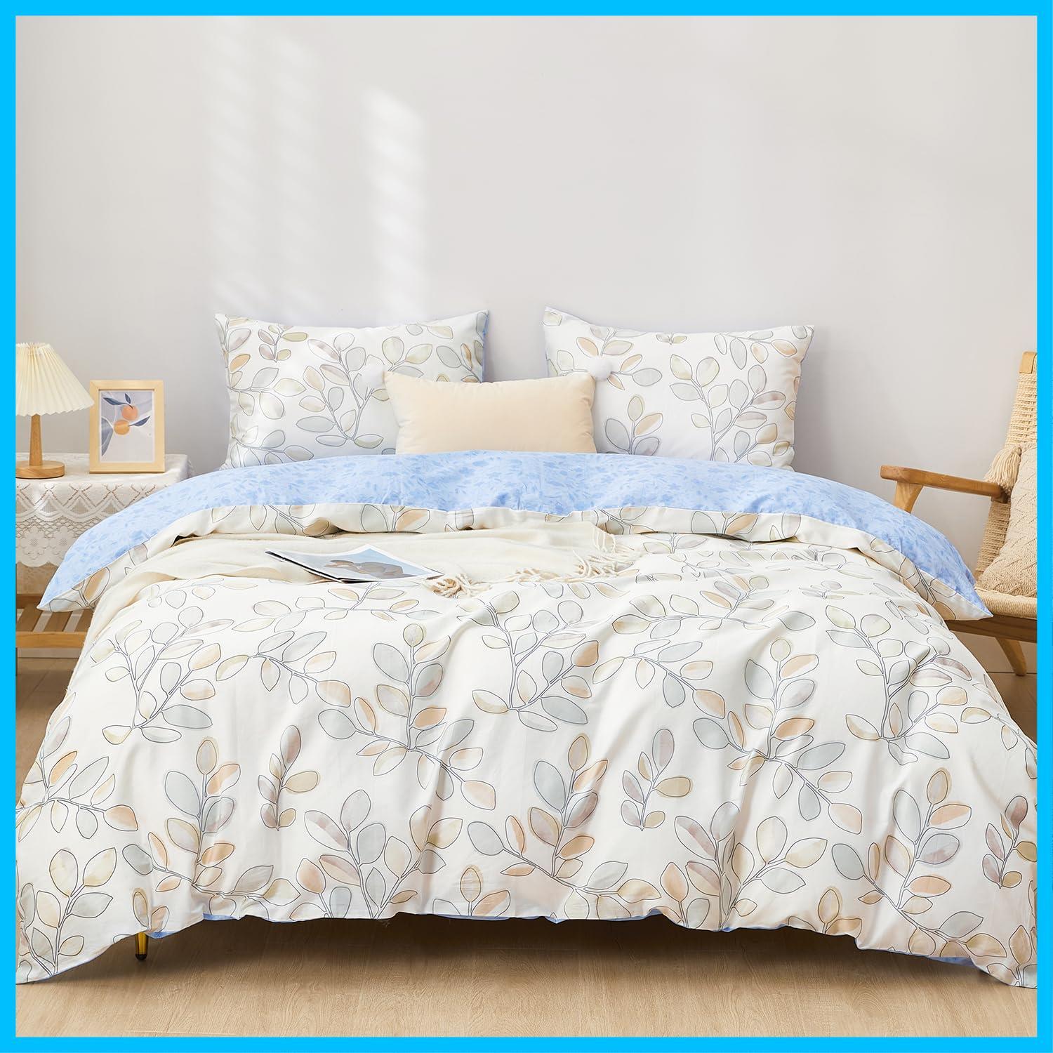 SAPHREAS【布団カバーセット シングル・3点セット】綿 100% 洋式・和式兼用 ボックスシーツ 枕カバー 寝具カバー 軽量通気性 青です 植物 おしゃれ オールシーズン対応(掛カバー150*210cm) | Lulu