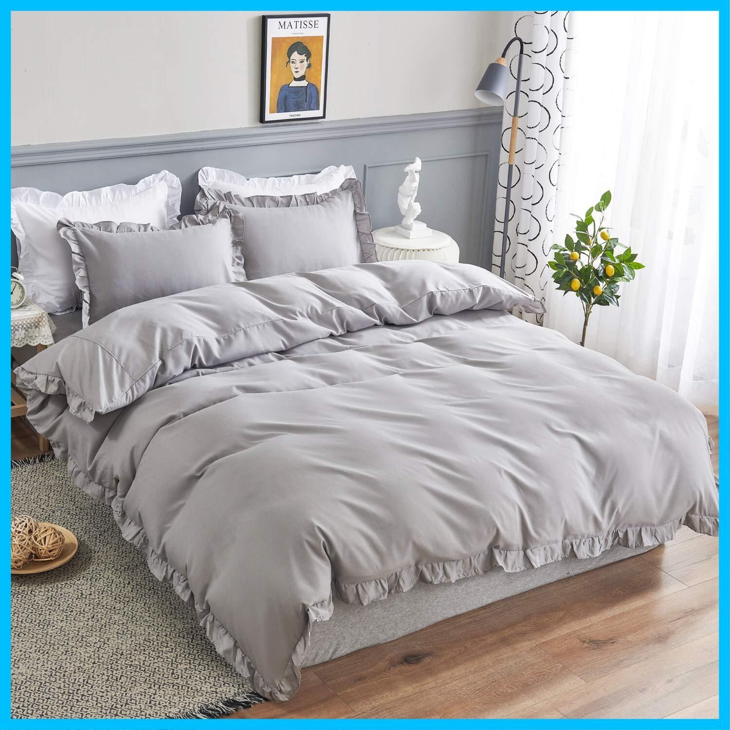 【 限定】STVICTORY 布団カバー ダブル 4点セット 掛け布団カバー ベッドカバー 枕カバー ボックスシーツ ベッドシーツ 寝具カバーセット おしゃれ フリル付き ピーチスキン加工 洋式和式兼用 洗い替え 速乾タイプ (ダブル ライトグレー) | Lulu