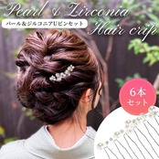 パールとジルコニアのヘアピンです。6本1セットです。小さいながらもキラキラとした輝きは華やかさをプラス。上品な優しい印象のヘアピンです。