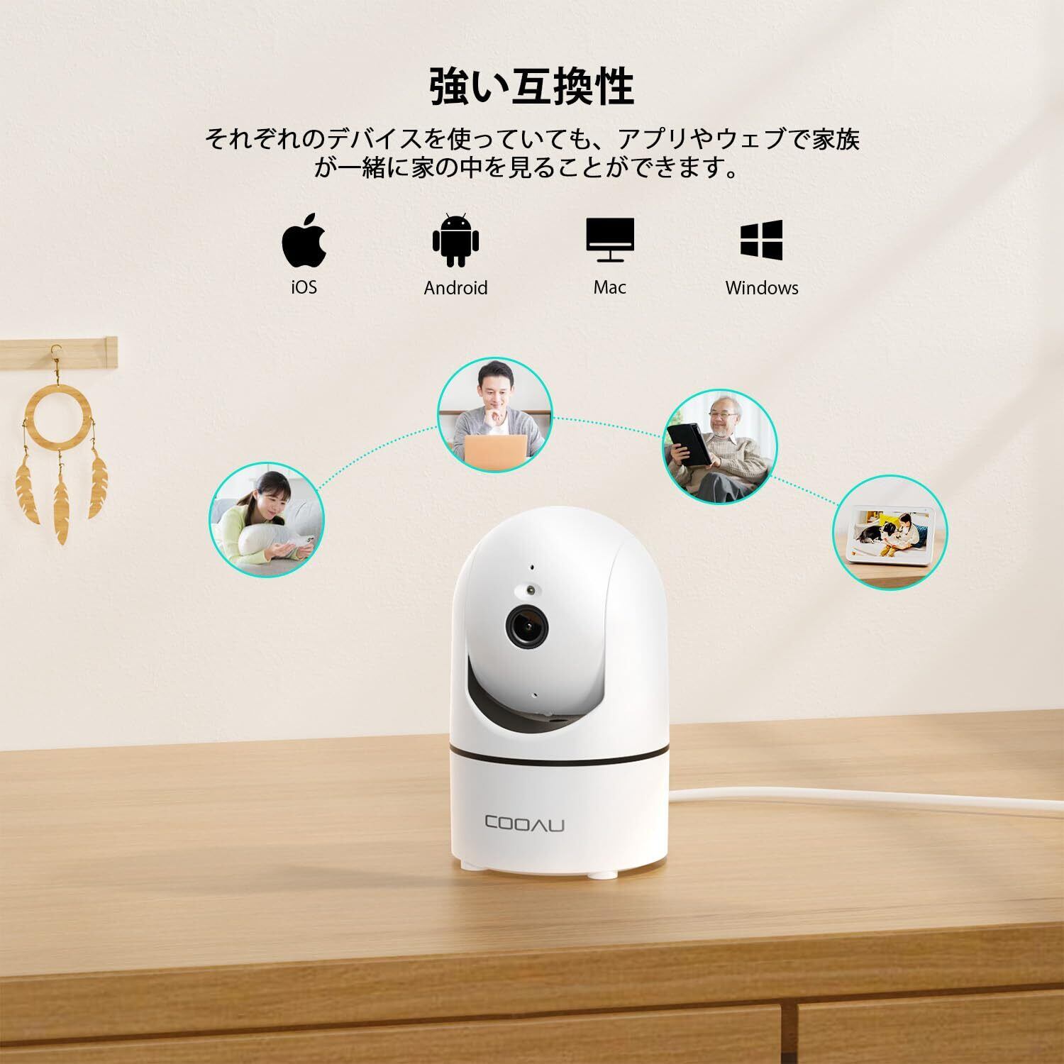 【複数機器同時接続、自由なインストール、複数システム対応】家の各部屋に同時に防犯カメラを設置し、それぞれのカメラの視点をアプリ上でいつでも切り替えることができるので、ペットが一人でいるときに、家の中で何をしているかをより全体的に見ることができます。製品パッケージにはブラケットと2mの電源コードが含まれており、ネットワークカメラ本体は小型軽量で、自由な取り付け方で、さまざまなニーズに対応できます。子どもの様子を見るだけなら、ベッドサイドのテーブルに置くだけですし、部屋全体の様子をもっとよく見たいなら、壁や天井に設置してもいいでしょう。Alexaに対応し、音声アシスタントと組み合わせることで生活をよりスマートにすることができます。アプリやウェブサイトがあり、スマホやタブレットに対応(Anroid/ios/mac IOS 8.0以上、Android 5.0 以上)。家族が異なるデバイスを使用していても、接続して使用できるようにします。様々なニーズにお応えします。
