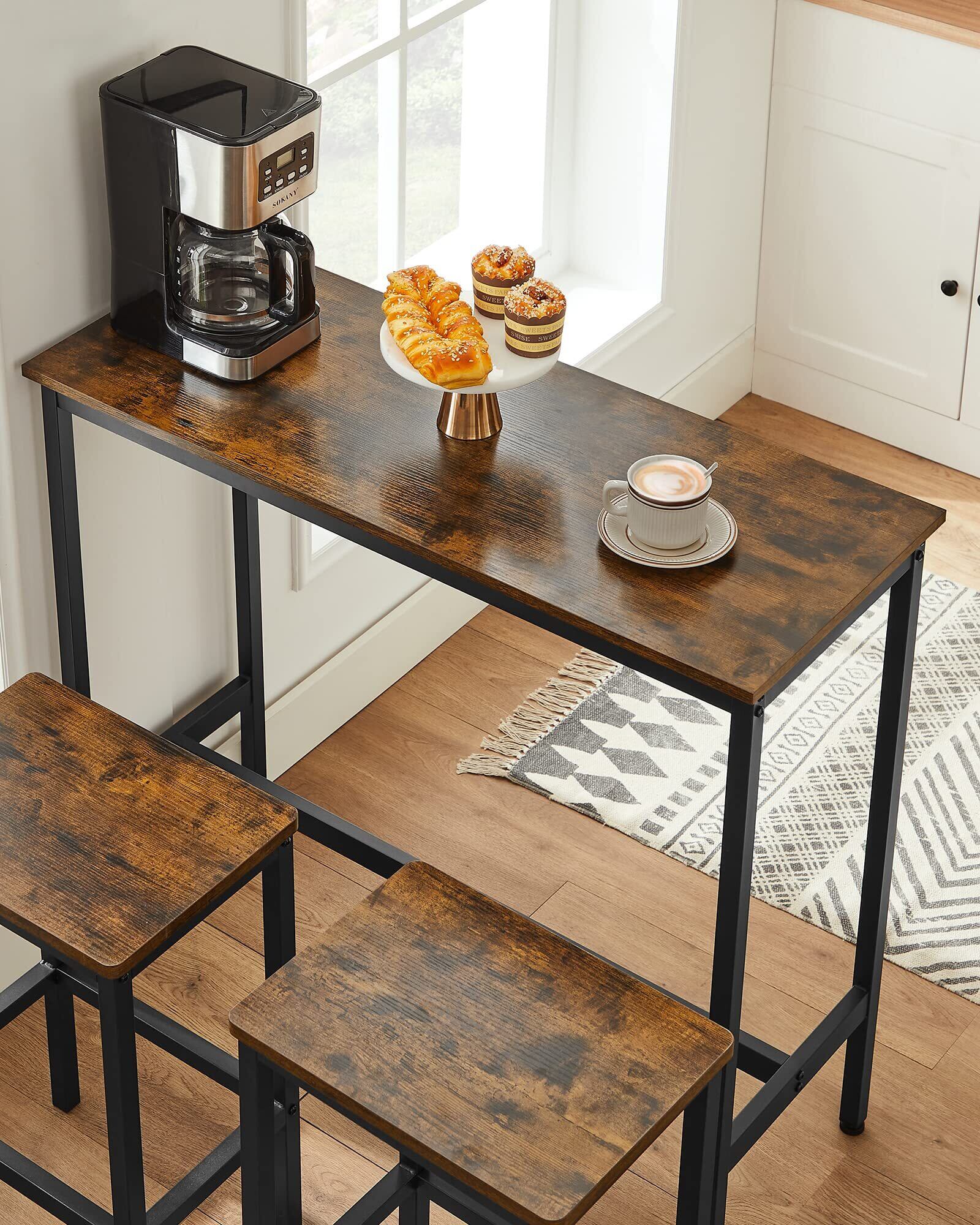 VASAGLE カウンターテーブル チェア 3点セット 木目調 ヴィンテージ ダイニングセット 天然木 省スペース パソコンデスク 作業台 木製 おしゃれ 北欧 幅100cmお洒落 シンプル ハイテーブル パソコンデスク おしゃれ LBT218B01