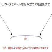 簡単組み立て(約3分)。ポールとベースの一部はそれぞれ伸縮コードで繋がっています。バラバラにならず間違える心配もないため簡単に組み立てが可能です。