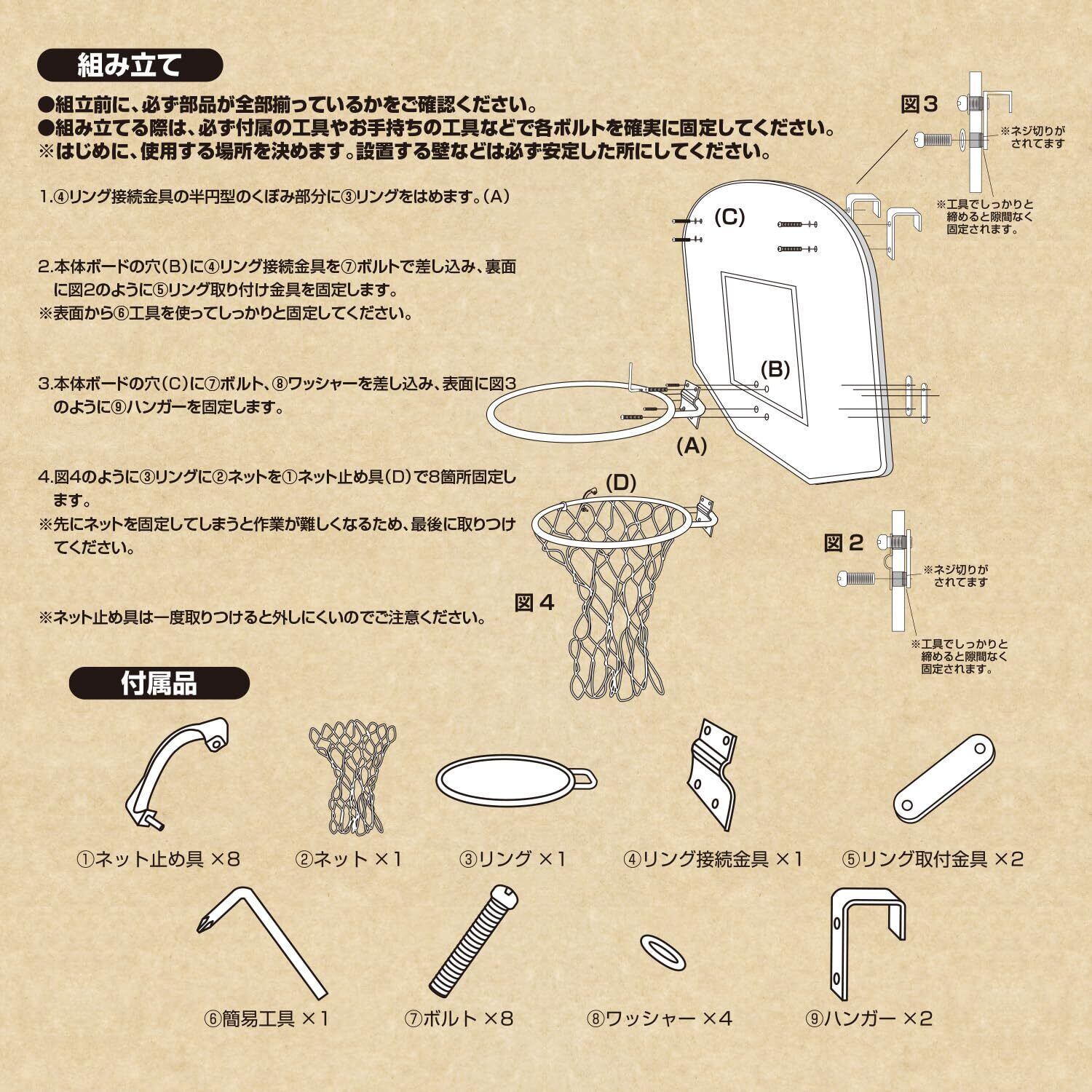 リング内径(約):28.5cm(バスケットボール5号対応) ボードサイズ(約):605x453x17mm