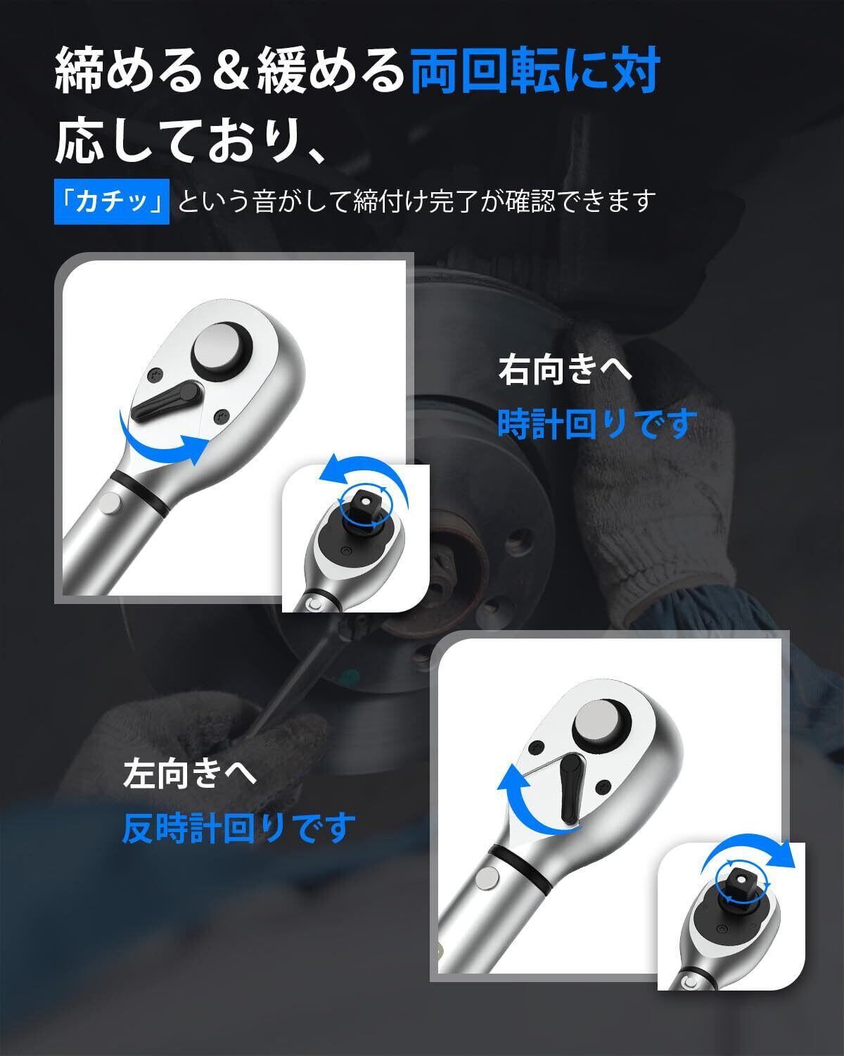 ️【締める&緩める両回転に対応】トルクレンチ両回転対応型で右ネジ・左ネジのトルク測定が可能。締付け、緩めは切り替えレバーを左右に切り替えるだけのワンタッチ操作。