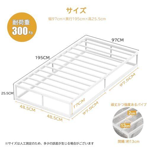PRTONE ベッドフレーム シングル メタル シングルベッド パイプベッド 静音 すのこベッド 一人暮らし ロー ミドル ベッド 狭い空間向け ベッド下収納 頑丈通気耐久 ギシギシしない 組立簡単 工具付き 耐荷重300Kg 白