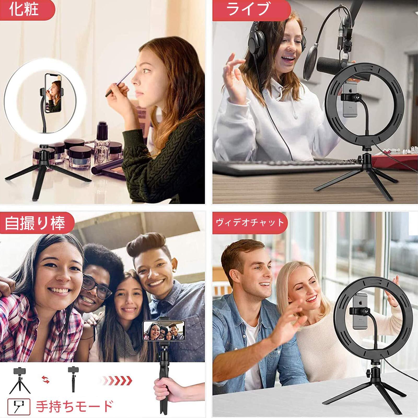 Boobaaa リングライト 10インチ 卓上 三脚スタンド スマホクリップ式 3色モード 10段階調光 3000-6500K補助光 照明撮影用ライトセット 360度回転 高輝度 自撮り スマホ カメラ リングライト web会議/オンライン授業/ビデオ/生放送/自撮り/美容化粧(日本語説明書付き)