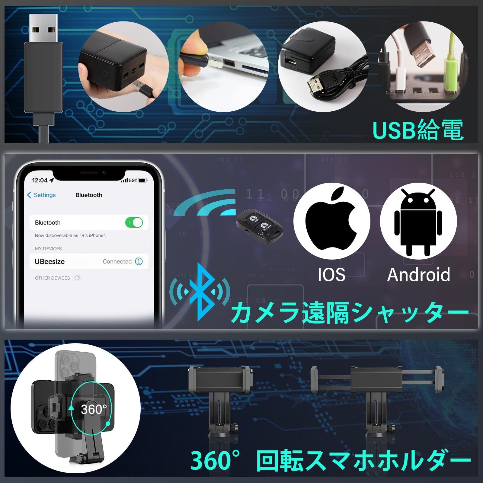 【USB給電式】汎用性の高いUSBコードを採用しており、ノートパソコン、パソコンなど給電可能です。外配信、屋外撮影にも便利性を持っています。※スマホホルダーの装着はリングライト下にある穴に取り付けることに変更しました。5V2Aアダプターまたは接続口に給電することがおすすめします。