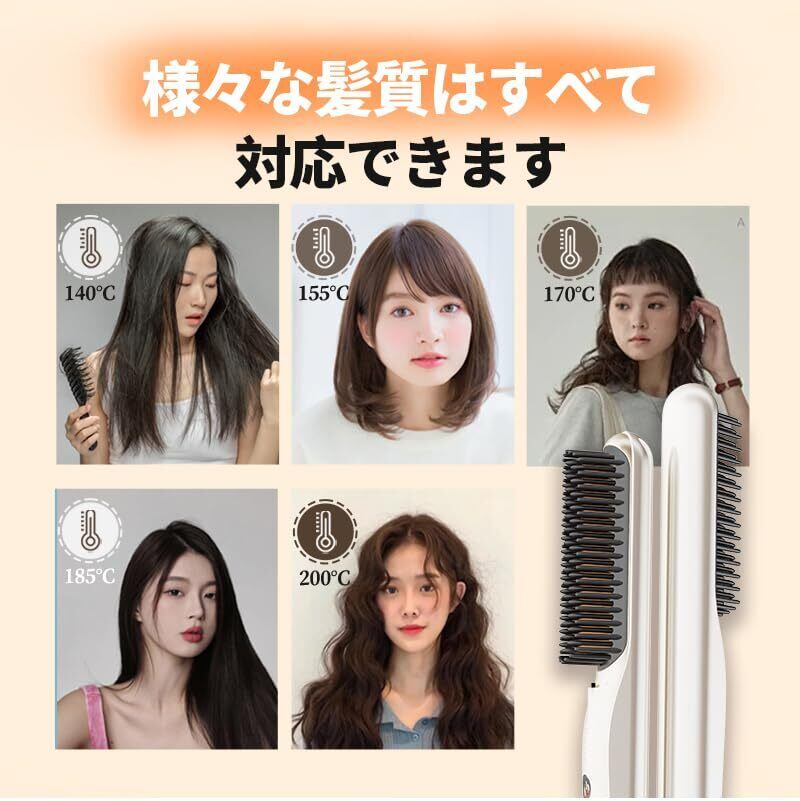 ラミドLa3℃ ストレートアイロン カールアイロン ヒートブラシ 2WAY, 270g軽量, 10秒急速加熱, 5段階温度設定, 360°回転コード, 2000万個マイナスイオン発生, ベージュ | Lulu