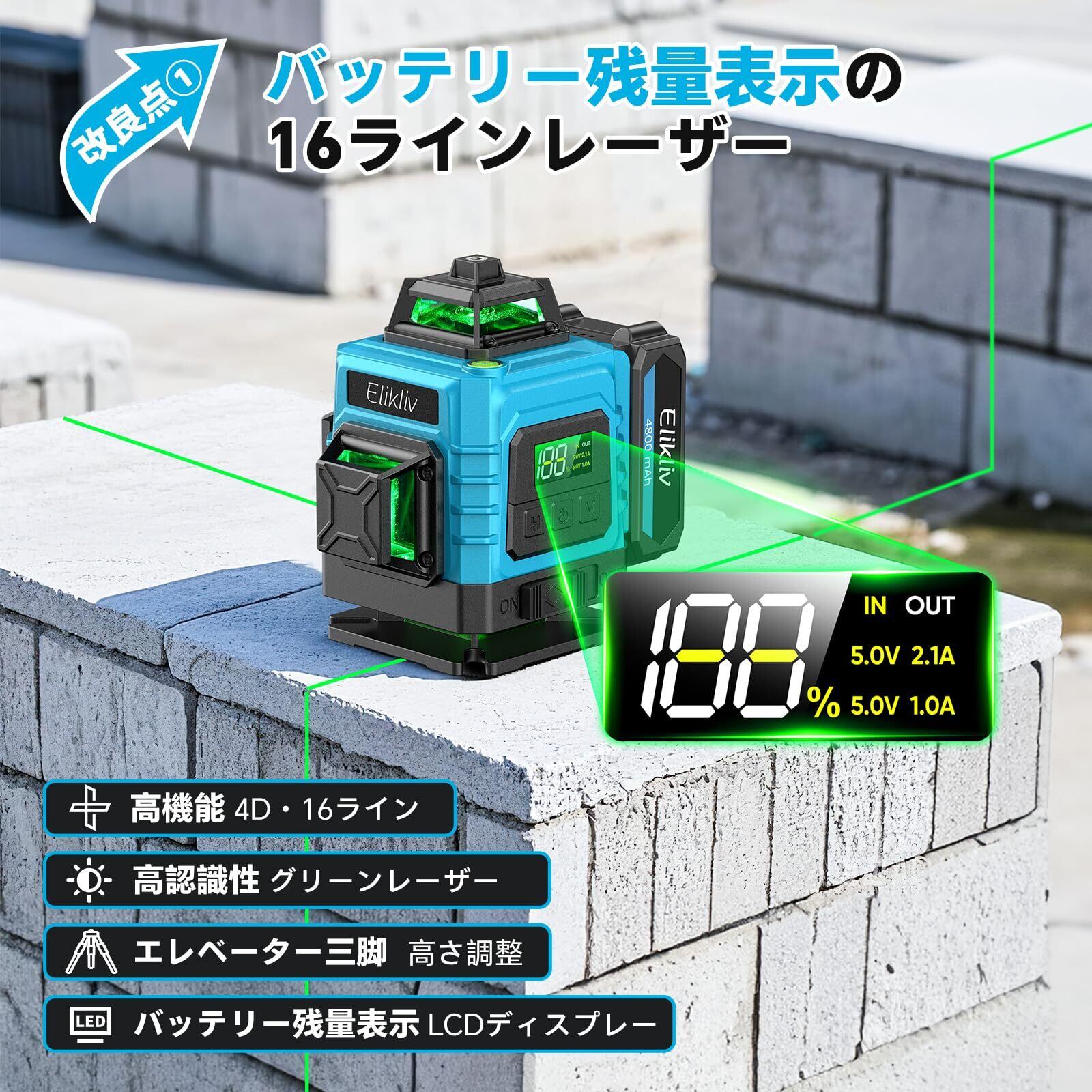 【2025年新登場】Elikliv レーザー墨出し器 グリーンレーザー 水平器 16ライン 緑色 エレベーター三脚・電量LCDディスプレー搭載 レーザーレベル 4x360°フルライン 水準器ツール 回転レーザー線 緑色 ミニ 小型 高輝度 高精度 自動補正 受光器対応 屋内屋外 軽天作業 DIY 測量建築 リモコン付き 大容量バッテリー2個付き B16 Pro | Lulu