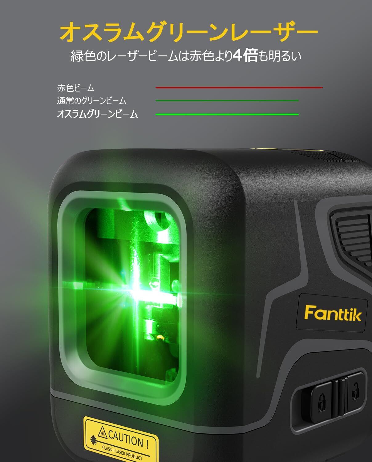 Fanttik D2 レーザー墨出し器 自動水平補正 レーザーレベル グリーン クロスライン 30m作業範囲 360°回転 USB-C 充電式 パルスモード 磁気ブラケット IP54 耐衝撃 収納袋 建築測定 インテリア DIY | Lulu