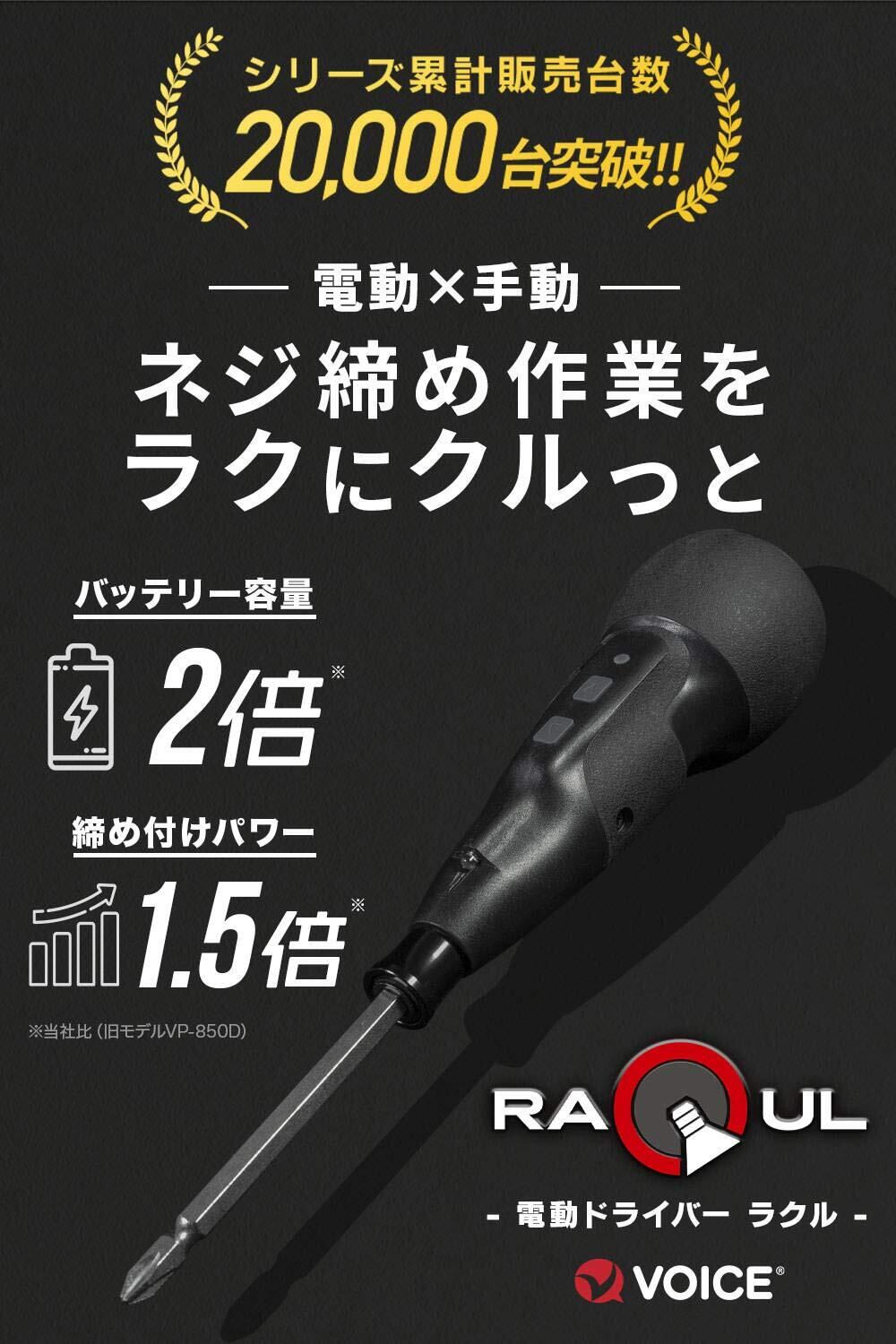 VOICE (ヴォイス) 電動ドライバー RAQUL (ラクル) ボール型グリップ 電動 手動 兼用 小型 USB Type-C 充電式 軽量 正転 逆転 ネジ締め DIY ビット 充電ケーブル付属