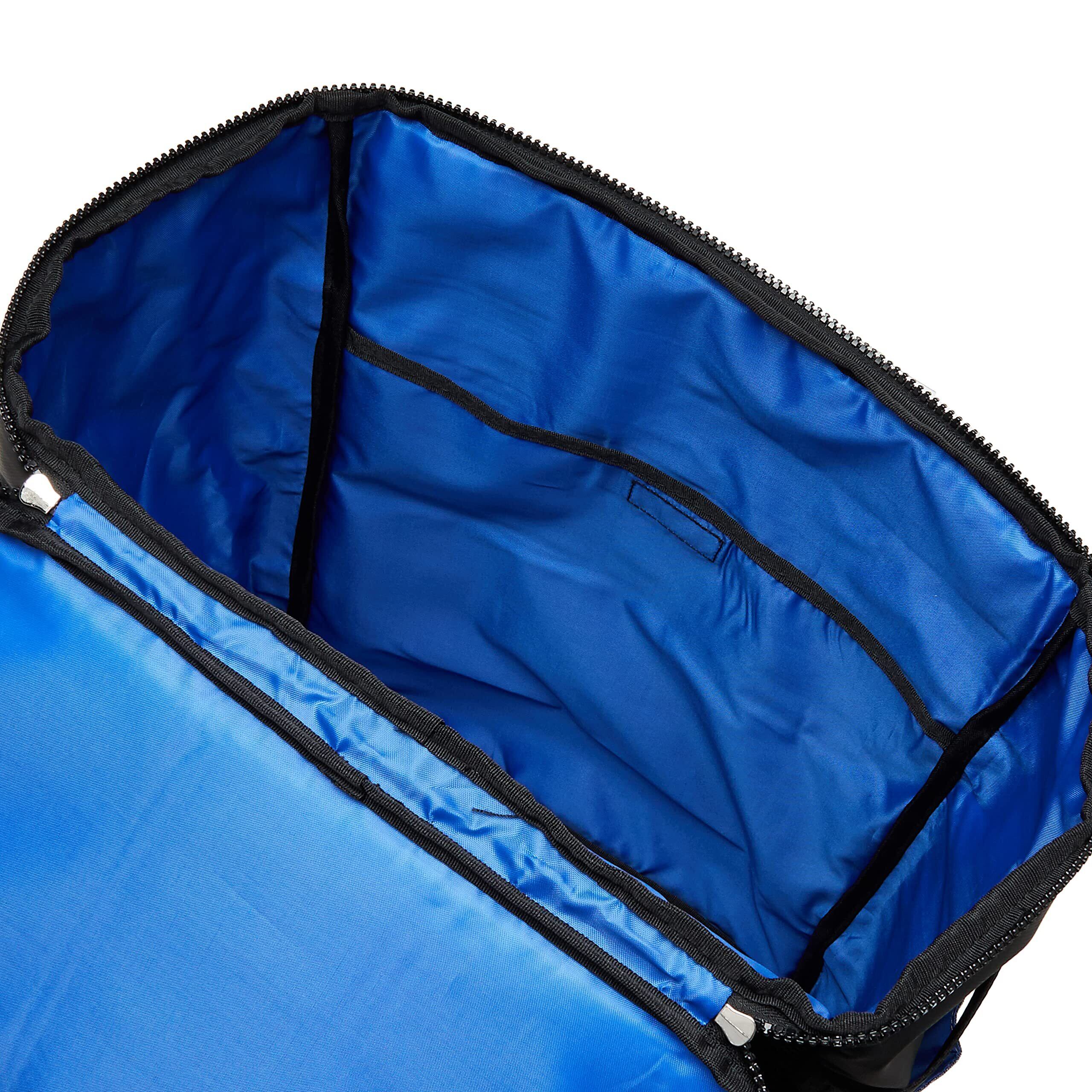 スポーツブランド<アンブロ>のスクエアリュック。シューズやお弁当、洗濯物など分けて収納ができる二層仕様。メインポケットは大きく開く間口に加え約20cmの幅広マチ、さらにブルーの内装で中身が見やすく出し入れしやすい。またウレタン入りのポケットは13インチのノートパソコンがすっぽり収納できます。外側にも側面と前面に異なるポケットが2つずつ、上部にもファスナーポケットが1つと小物収納もしっかり可能。子どもの学校行事やご自身の出張など十分に役割を果たしてくれるリュックです。