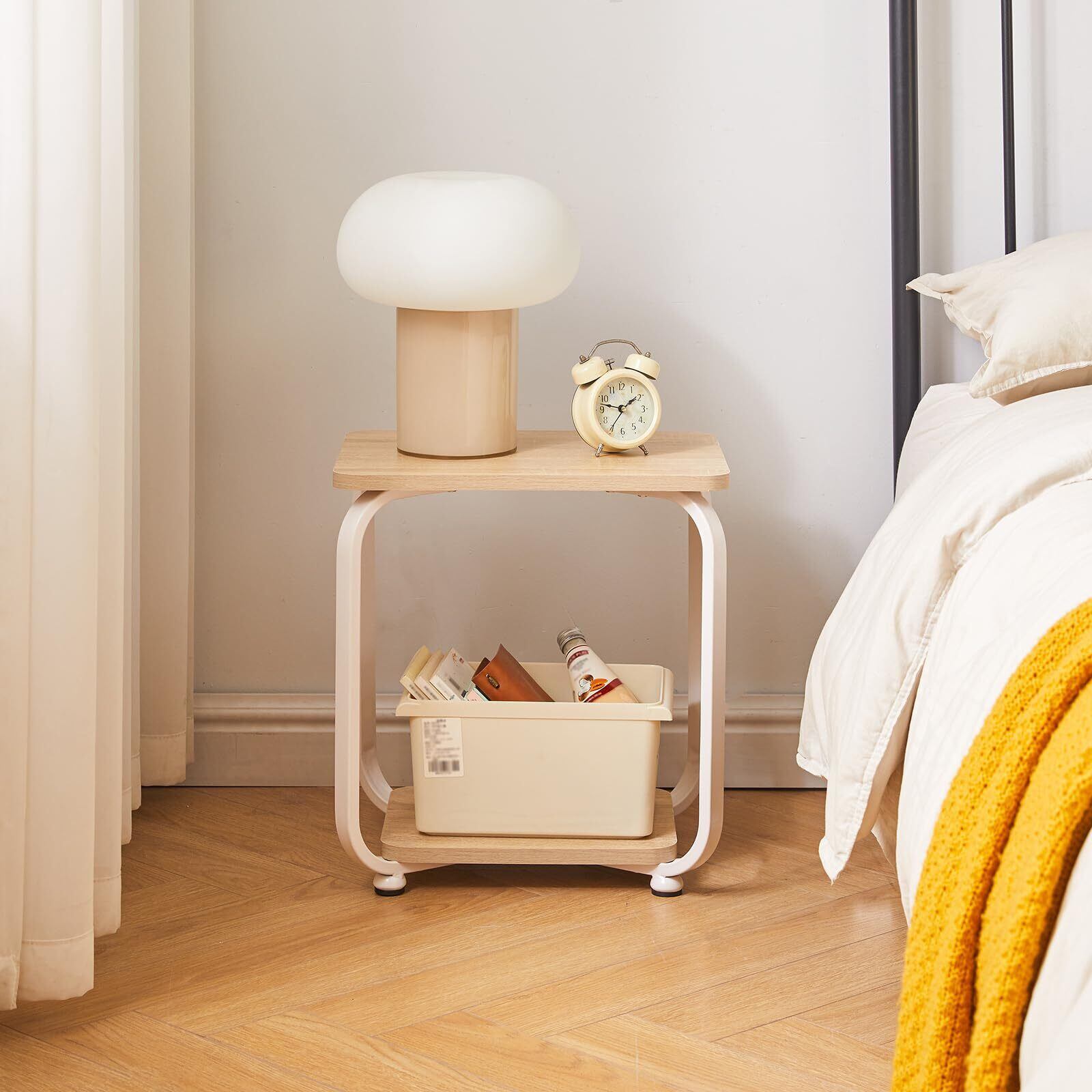 IBUYKE サイドテーブル コンパクト ナイトテーブル ソファサイドテーブル コーヒー テーブルミニテーブル リビングサイドテーブル 2段 オープンラック 収納ラック 小型 小物置き 組立簡単 奥行30幅40高さ42cm ナチュラル JPTMJ416R | Lulu