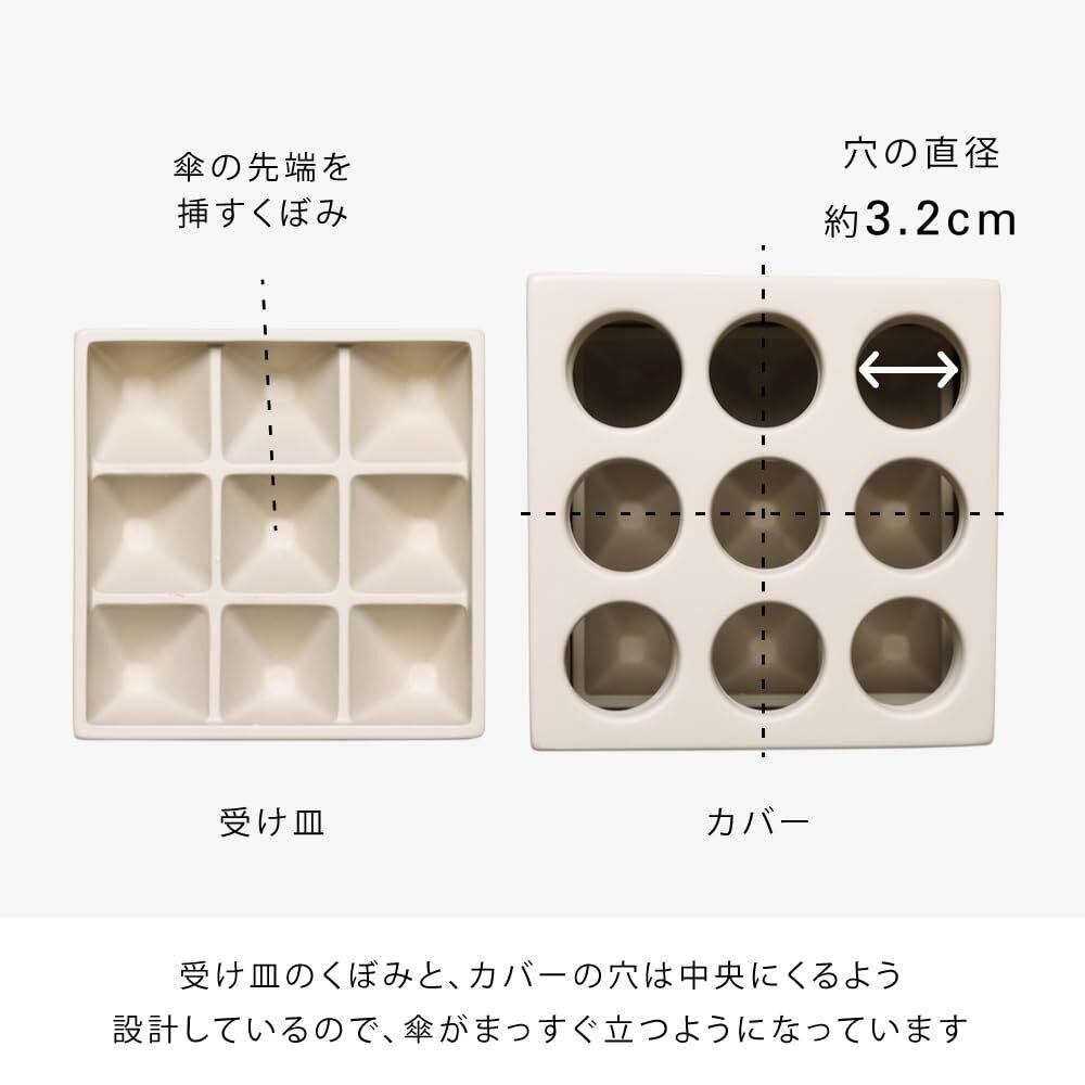 1998年、日本で初めてミニマルサイズの傘立てとしてCUBEは誕生しました。小さなボディにはたっぷり9本の傘が立てられ、適度な重さがあるので傘が倒れる心配もありません。底の水受け皿と、傘立て本体の2パーツ構造なので、お手入れも簡単です。