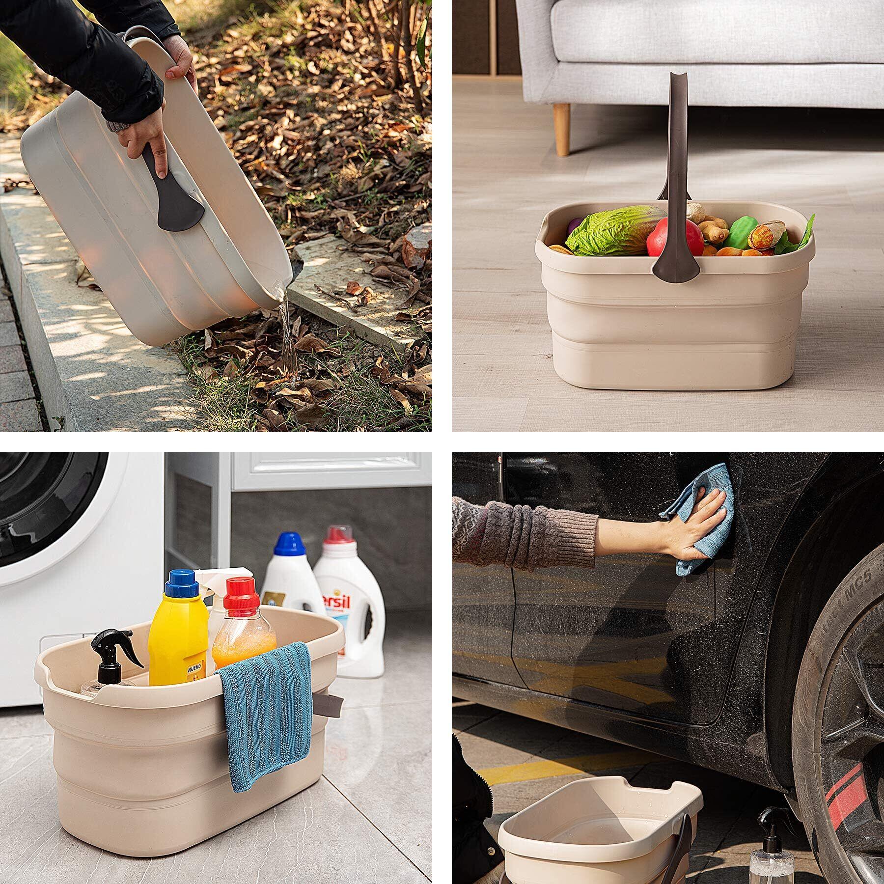 【多機能な折り畳みバケツ】:折りたたみバケツは、ランドリーバスケット、掃除、洗濯、洗面、足浴、収納、アウトドアレジャーなど多用途にお使いいただけます。つけおきバケツとして、衣類、靴下等洗濯物のつけ置き洗いや上履き、スニーカー洗いにも、洗濯かごとしても便利です。釣り、キャンプ、旅行の場合、スーツケースに入れて利用でき、洗車用バケツとしてもいいものです。犬猫の風呂桶、防災用品、収納用品、釣りバケツ、園芸用バケツとしても、かなり活躍できます。
