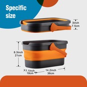 【折り畳みバケツ基本内容】サイズ:折りたたみ時(約)長さ36×幅18×高さ7.5cm。 使用時(約)長さ36×幅18×高さ21cm。重さ(約)680g。容量(約)10リットル。材質:PP+TPR。