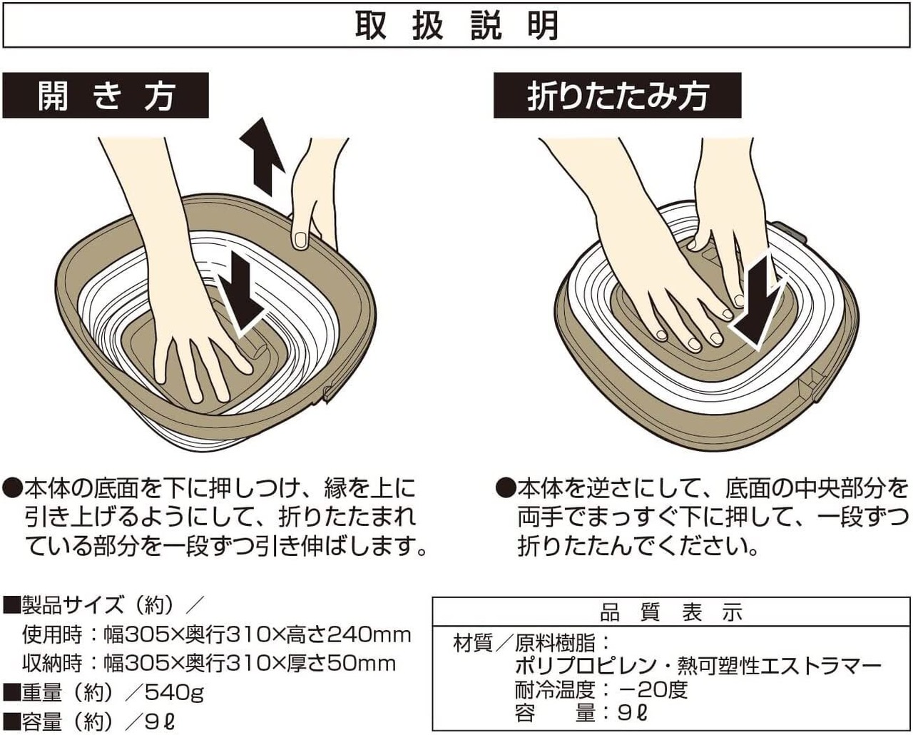 製品サイズ:(約)使用時/幅305×奥行310×高さ240mm、収納時/幅305×奥行310×高さ50mm