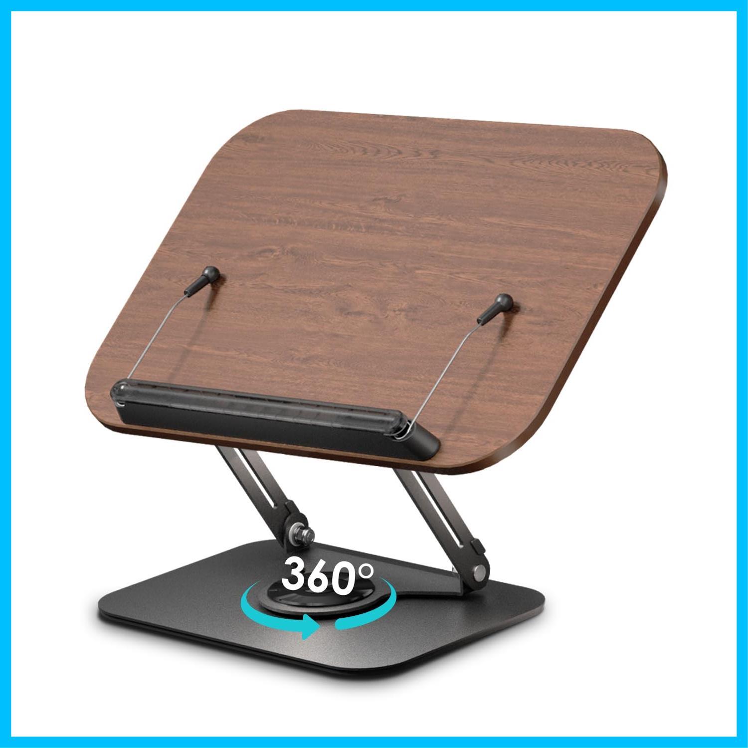viozon ブックスタンド 書見台 読書台 360度回転式台座 無階段高さ調節 折りたたみ式 アイロン台座 安定性抜群 持ち運びやすい ページ捲り簡単 木目 ダークウッド おしゃれ