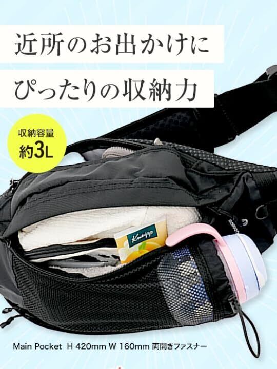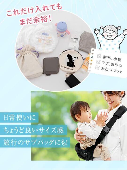[バルーナ] 抱っこバッグ 【40cmワイド座面で安定感】 ヒップシート ショルダーバッグ 抱っこ紐 大容量 3L 撥水ドリンクホルダー 抱っこしたままお会計できるポーチ Dカン 取説 装着付