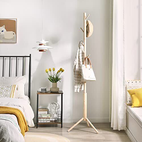 YMYNY ポールハンガー 木製 コートハンガー ハンガーハンガースタンド 8つフック 組み立て簡単 帽子 キャリーバッグ 衣服 リビング 寝室 高さ175cm ゴムウッド 木の色 JPHCR001N | Lulu