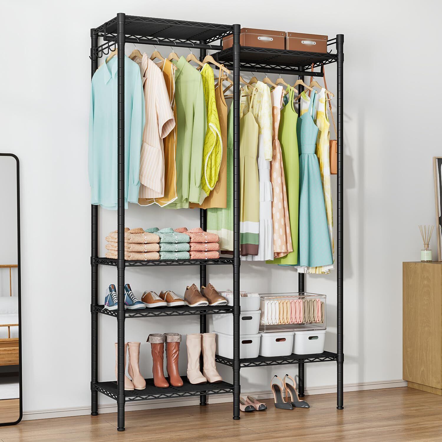 Fainyearn ハンガーラック 頑丈 2段 ワードローブ 棚板付き 大容量 衣類ラック スチールラック 棚 ラック 棚板高さ調節 洋服ラック 幅120cm×奥行40cm×高さ194cm | Lulu
