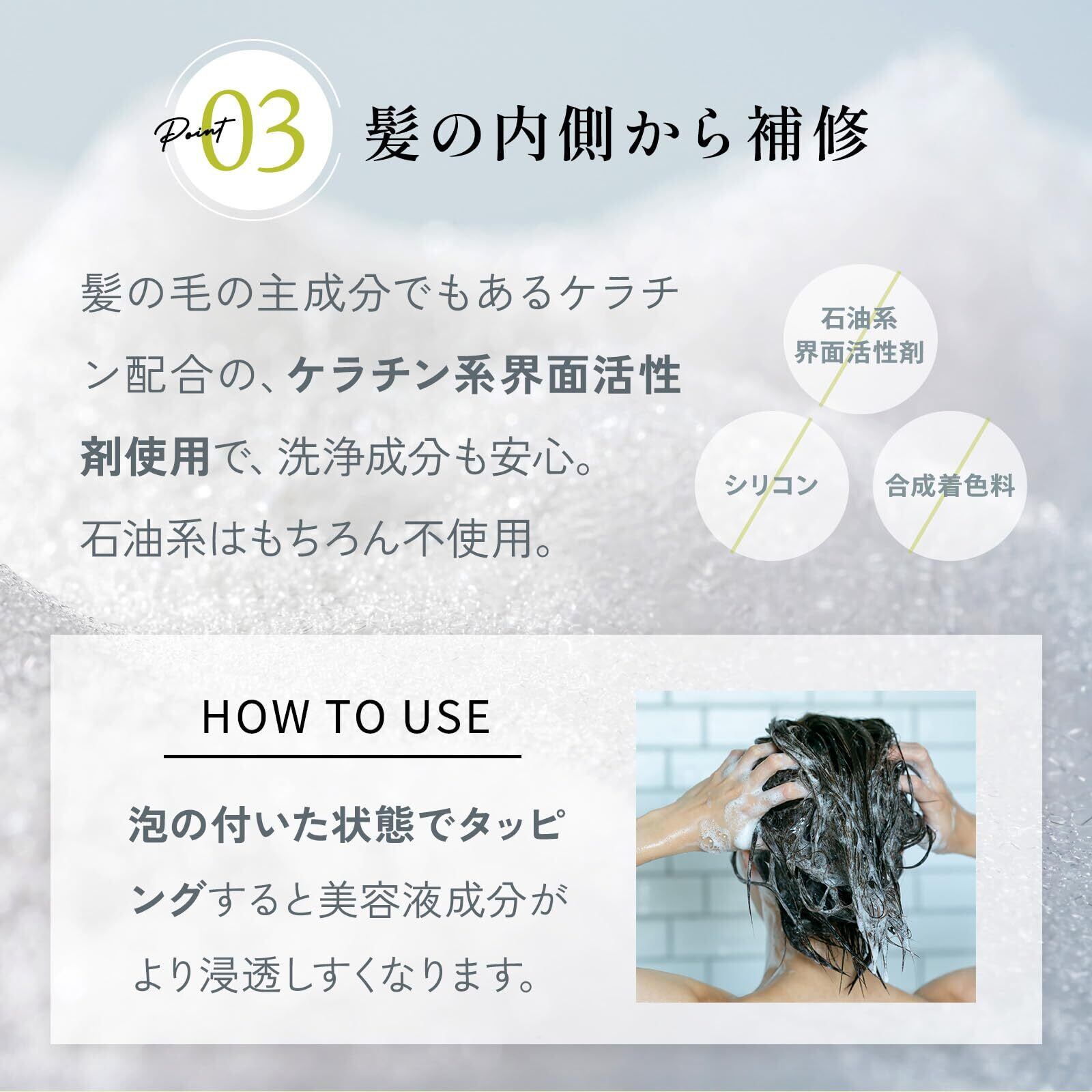 【石油系成分を使用しない本物のシャンプー】髪の毛の主成分でもあるケラチン配合の「ケラチン系界面活性剤」使用で、高い洗浄性を発揮。石油系はもちろん不使用。活性剤にも栄養分が入っているため、理想的な洗い上がりに。